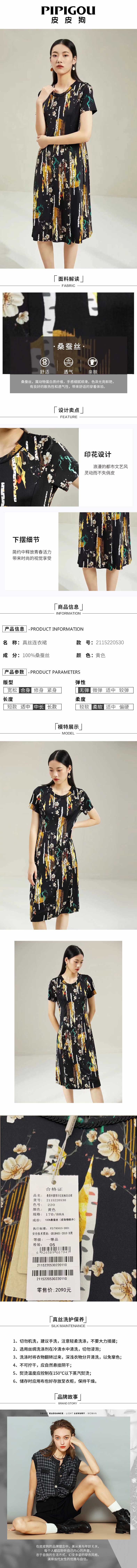 皮皮狗桑蚕丝圆领印花短袖连衣裙2115220530