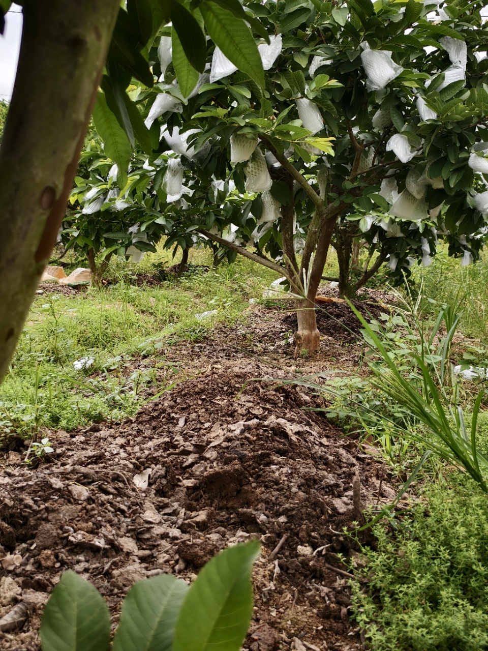 果子从小人工套袋防虫,不打药,绿色防虫!