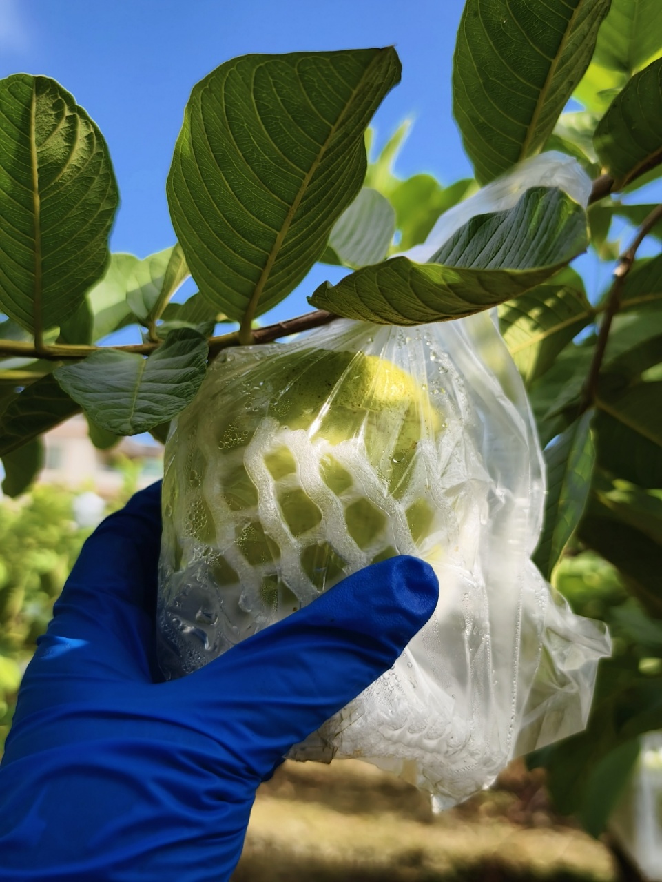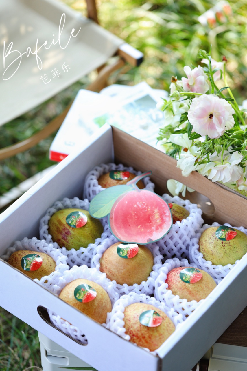 掀开盒盖,里面是9~12或者6~9枚芭乐,每颗芭乐都以柔软的雪梨网包裹,恰似给果实披上晨雾中的蝉翼纱。既守护着果实的新鲜度,又将亚热带风情转化为可触碰的立体诗篇,让每一次开启都成为探索自然之美的仪式!