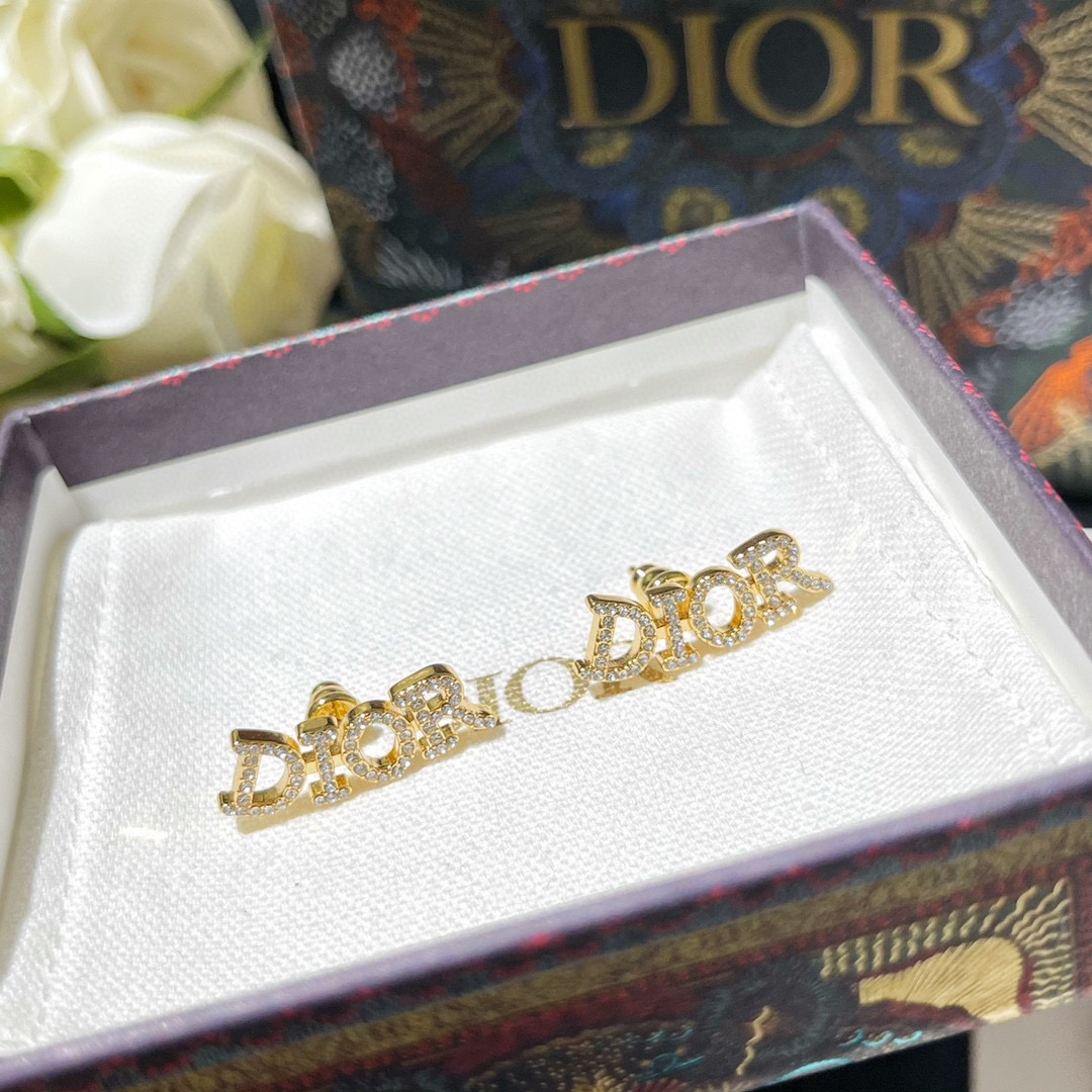 ☀新款DIOR迪奥满钻字母耳钉耳环