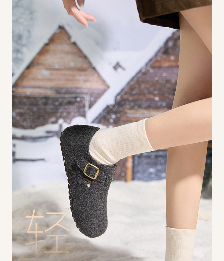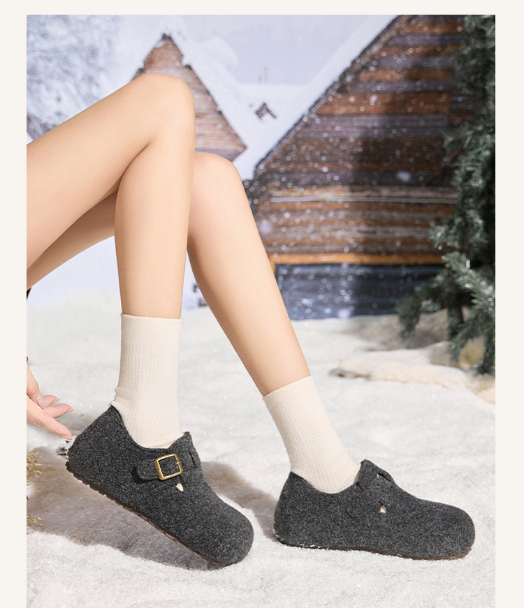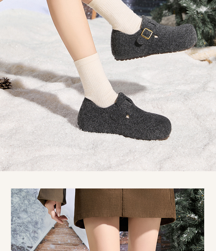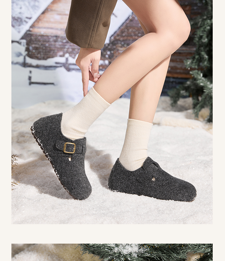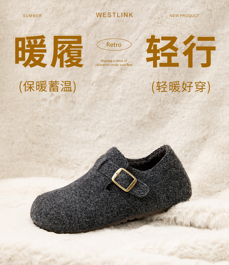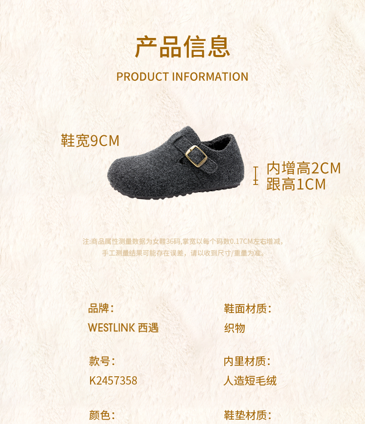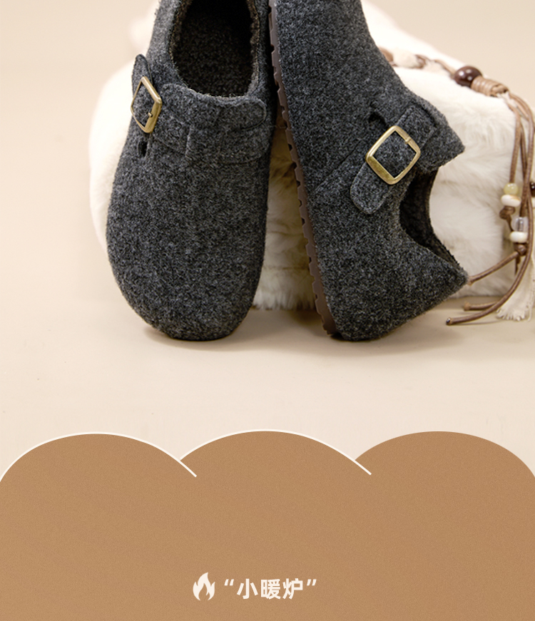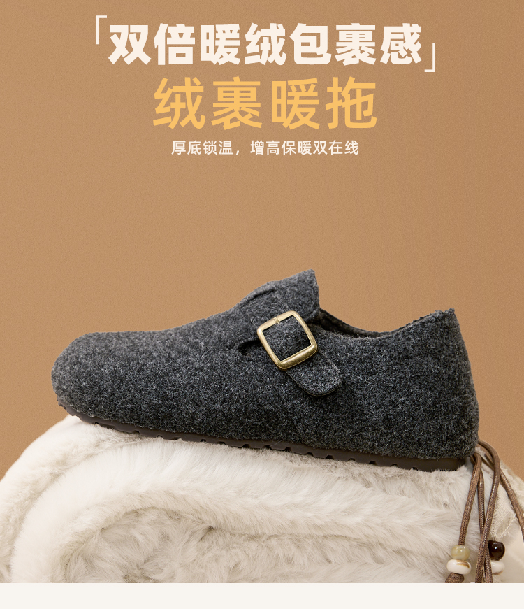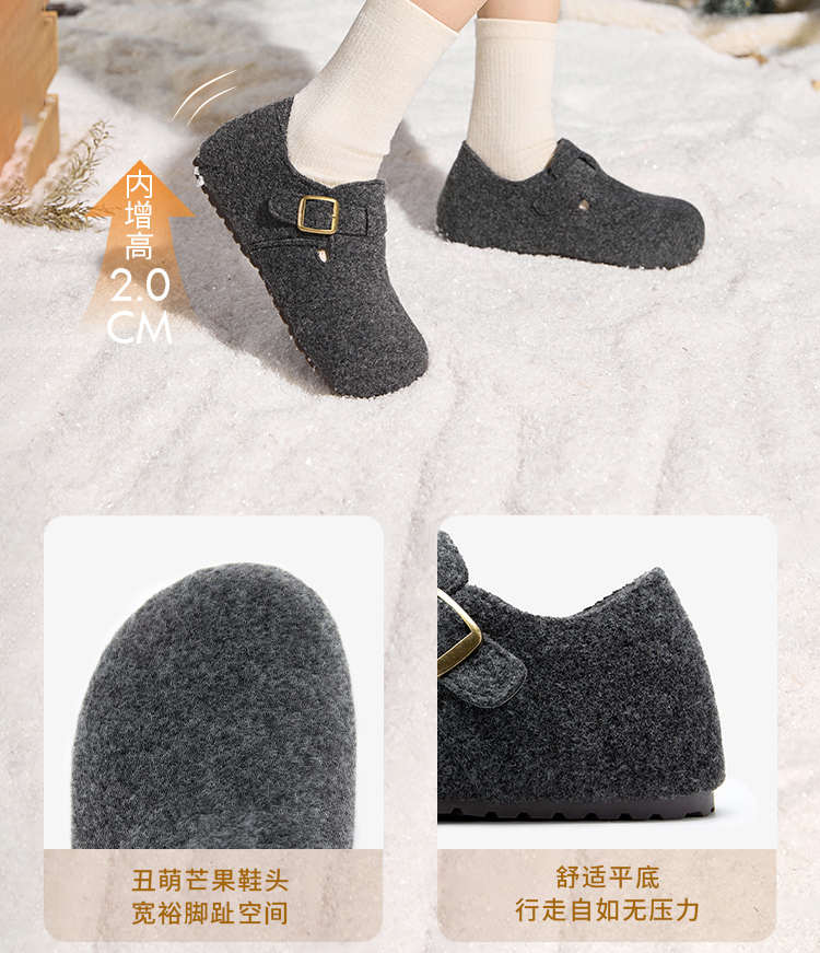 西遇加绒勃肯鞋女新款冬季保暖一脚蹬棉鞋内增高雪地毛毛鞋K2457358