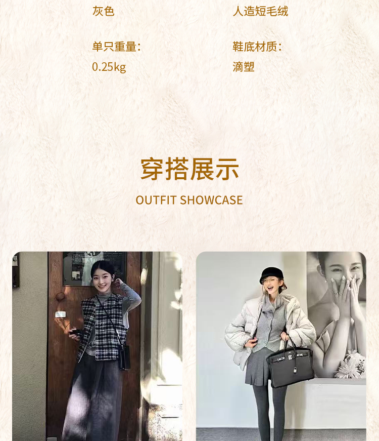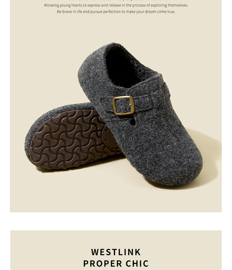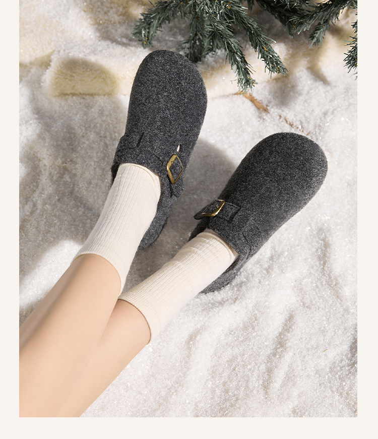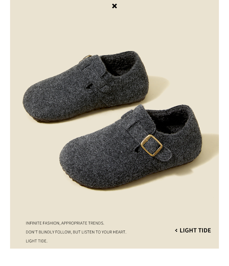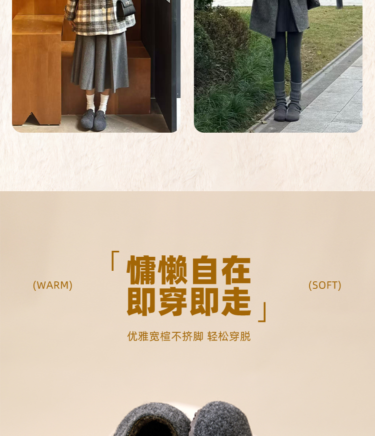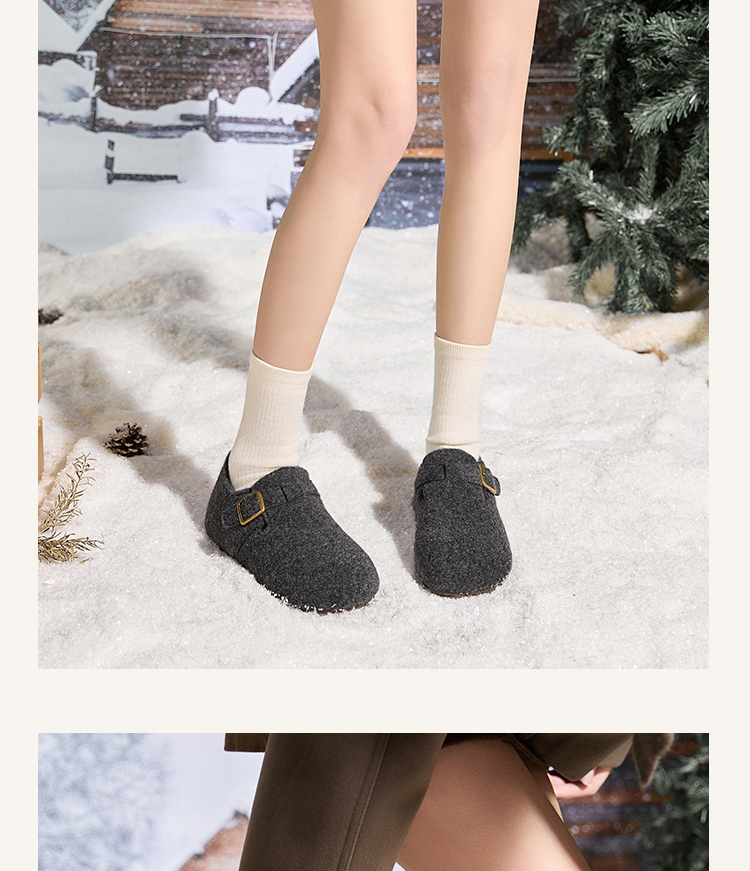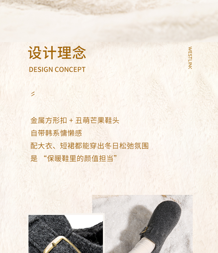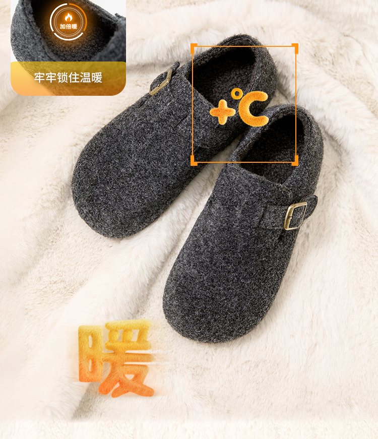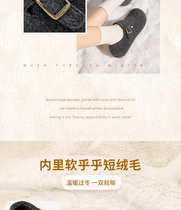 西遇加绒勃肯鞋女新款冬季保暖一脚蹬棉鞋内增高雪地毛毛鞋K2457358