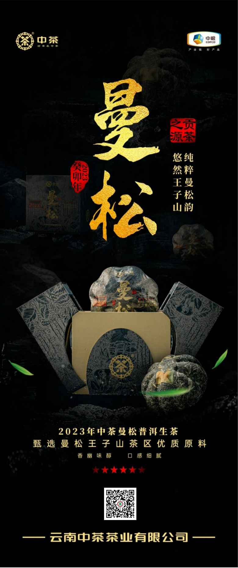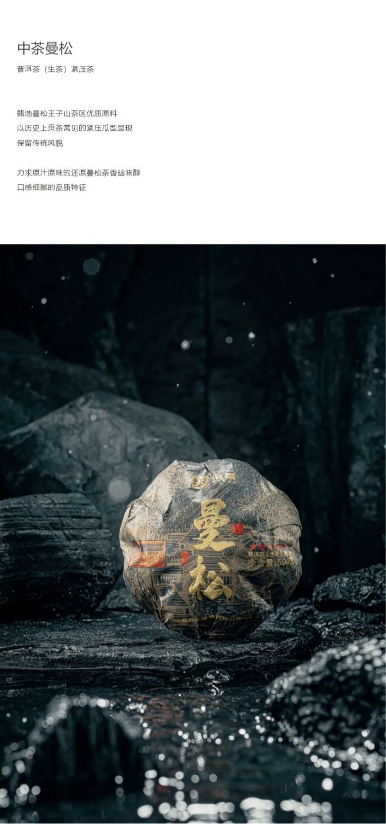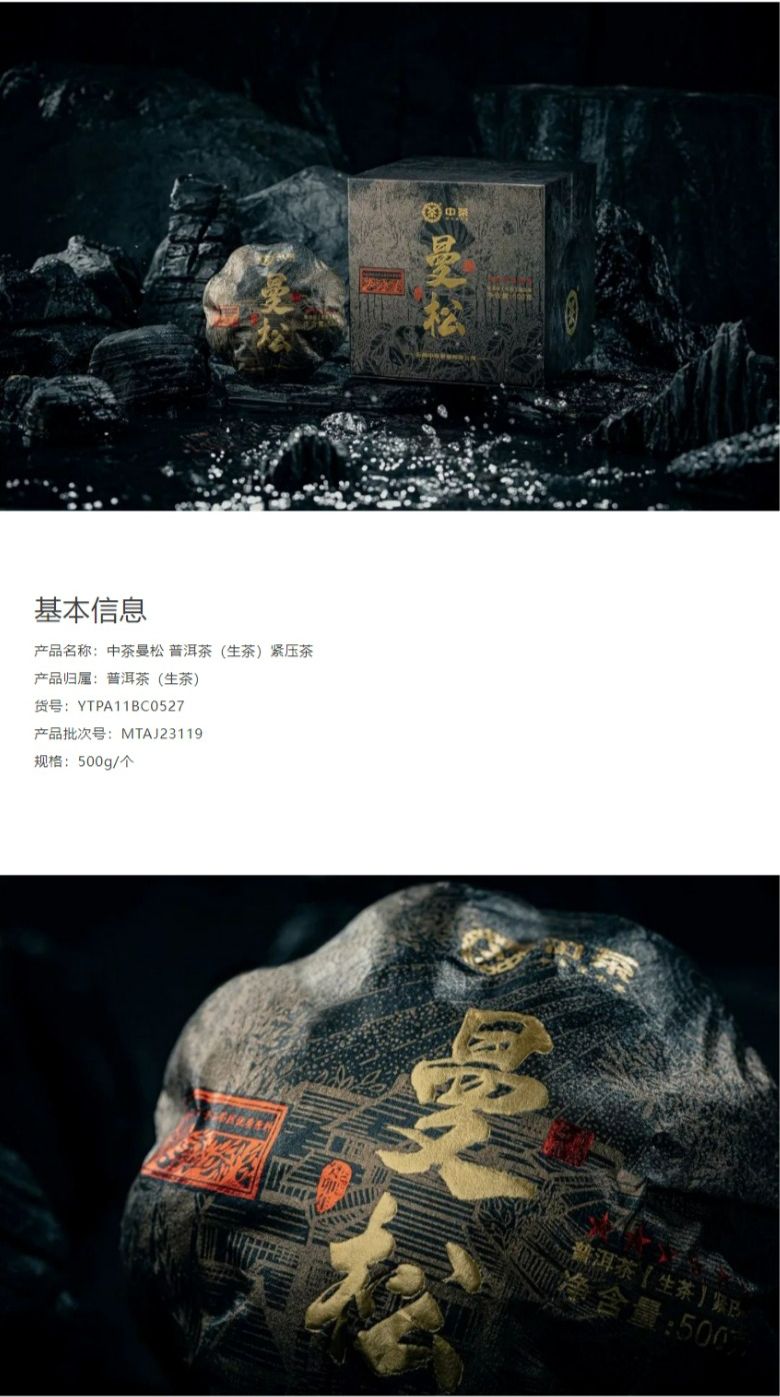 中粮-中茶2023年中茶曼松金瓜 易武曼松古树黑金普洱生茶500克云南茶叶 /云南干仓直发
