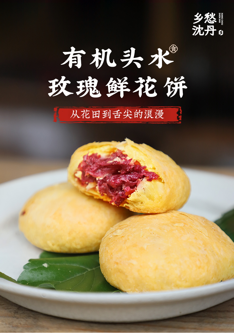有机头水玫瑰鲜花饼鲜做现发老手艺1盒50g*8