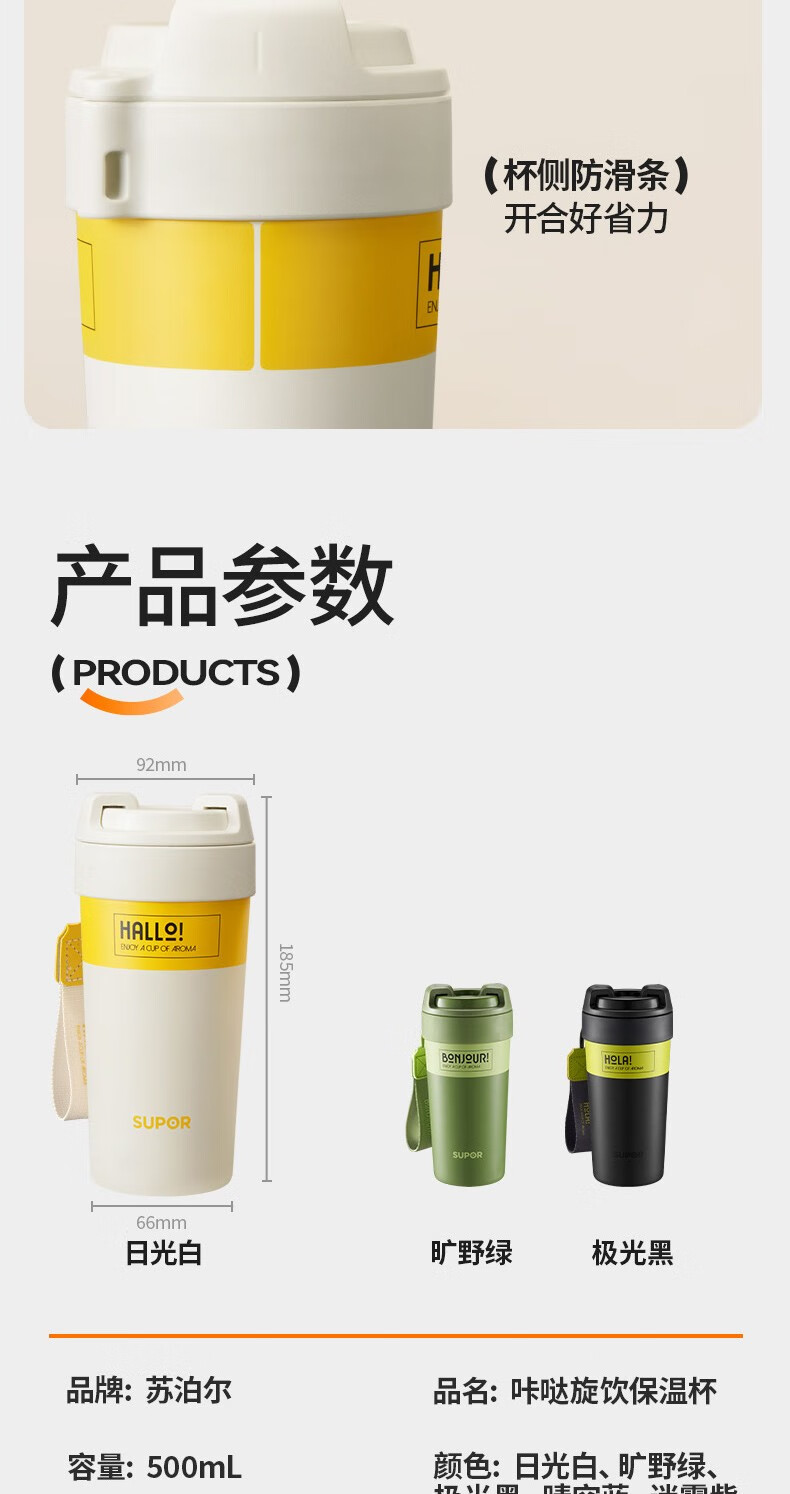 苏泊尔咔哒旋饮保温杯500ML(陶瓷内胆)