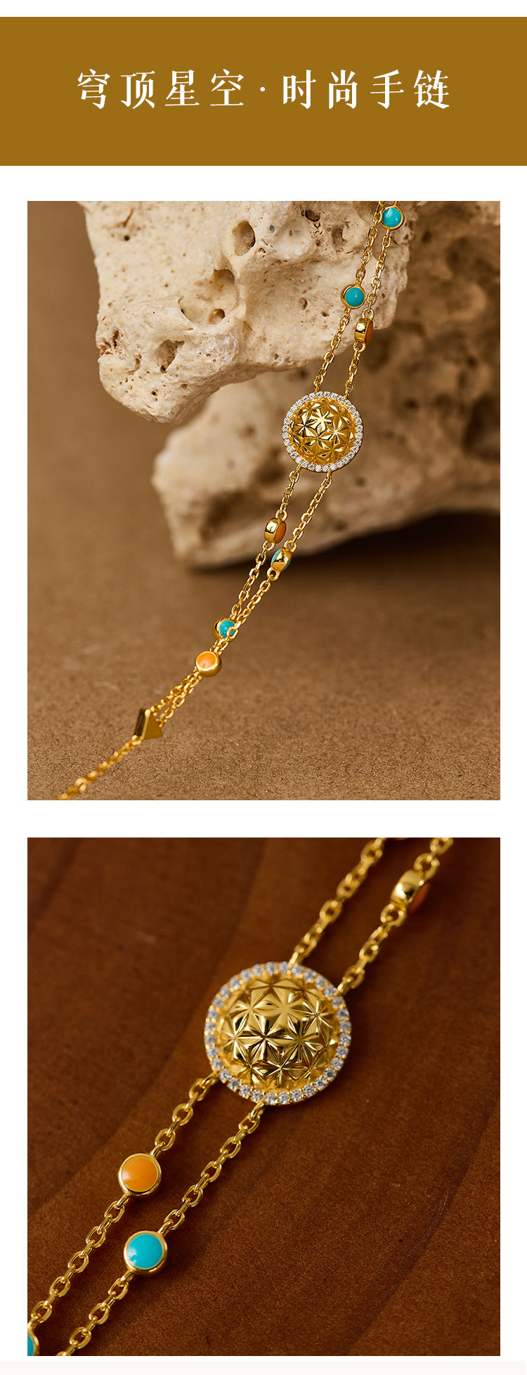 牛首山文创穹顶星空首饰组合925银镀金轻奢气质项链链牌手链