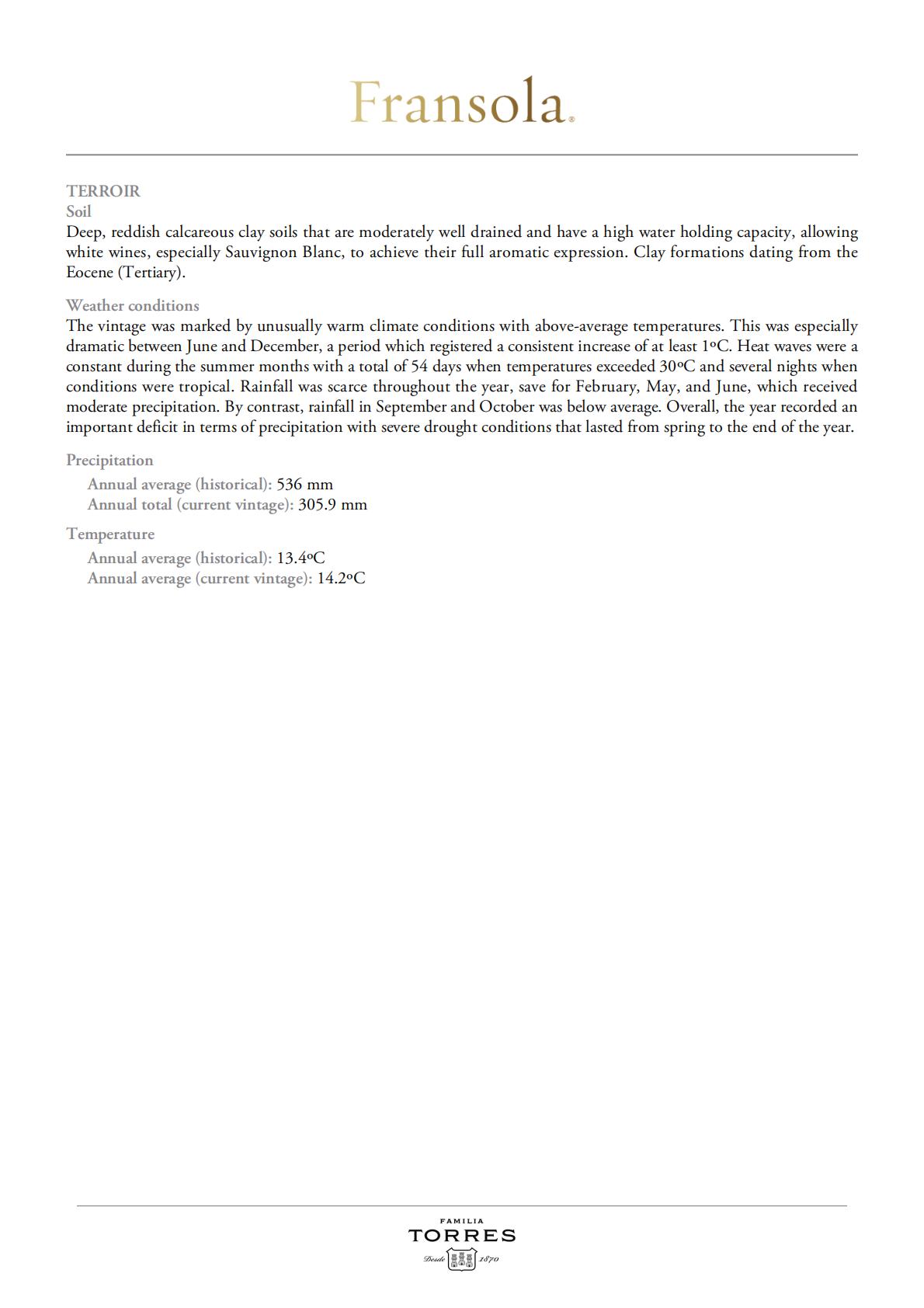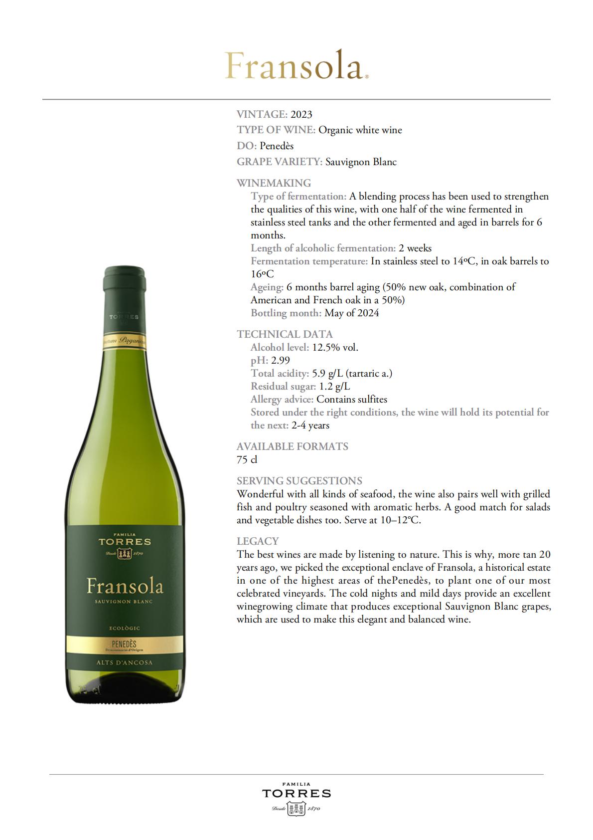桃乐丝菲兰索白葡萄酒 Torres-Fransola
