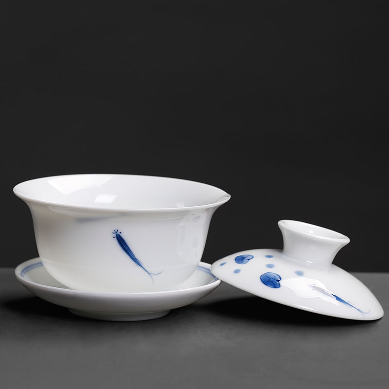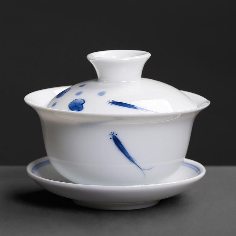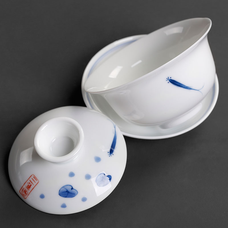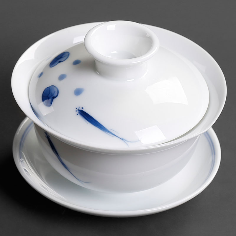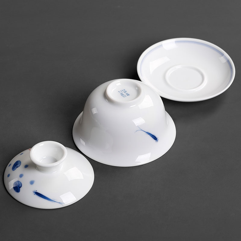 陶瓷单个手抓盖碗日式小号家用手绘三才青花瓷功夫茶具泡茶碗茶杯