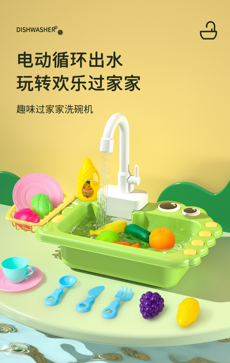 【养成收纳好习惯】儿童电动循环出水洗碗台 收纳玩耍二合一洗碗机 玩转欢乐过家家游戏