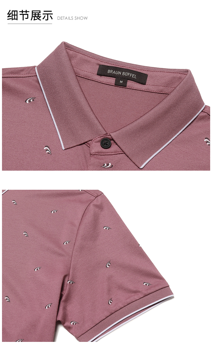BRAUN BUFFEL/布兰施男士时尚商务印花百搭翻领POLO衫男式短袖T恤