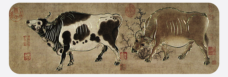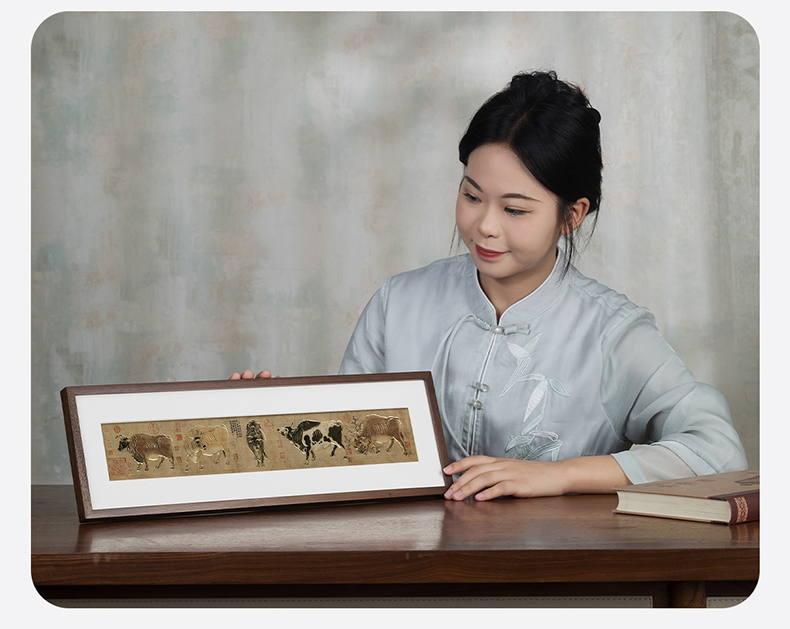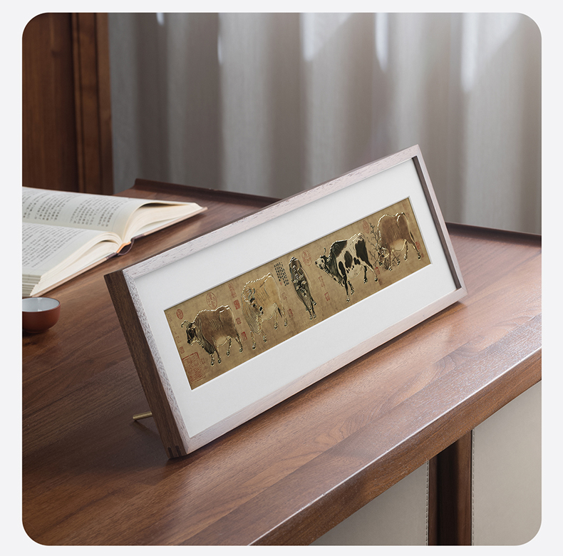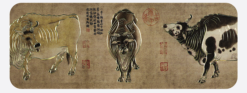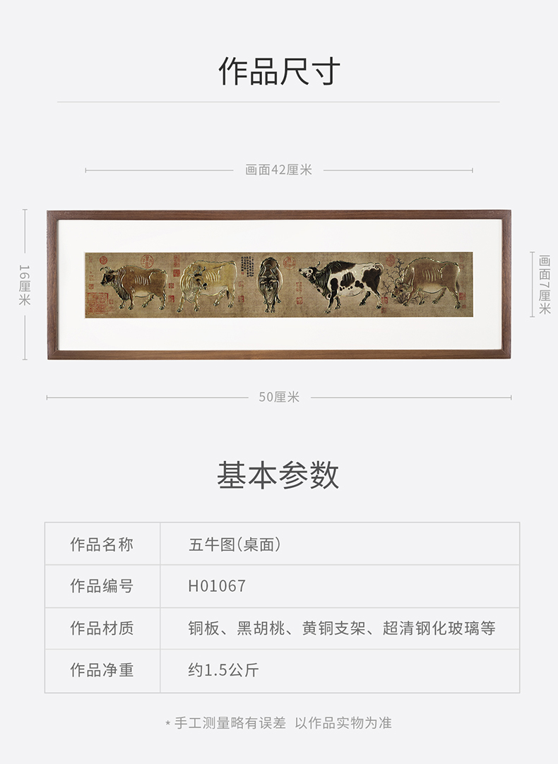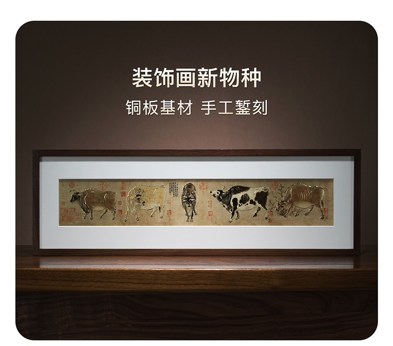 铜师傅 手工錾刻 铜雕画《五牛图(桌面)》书房办公桌装饰画