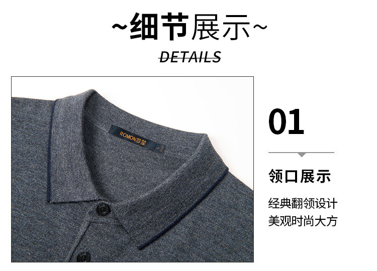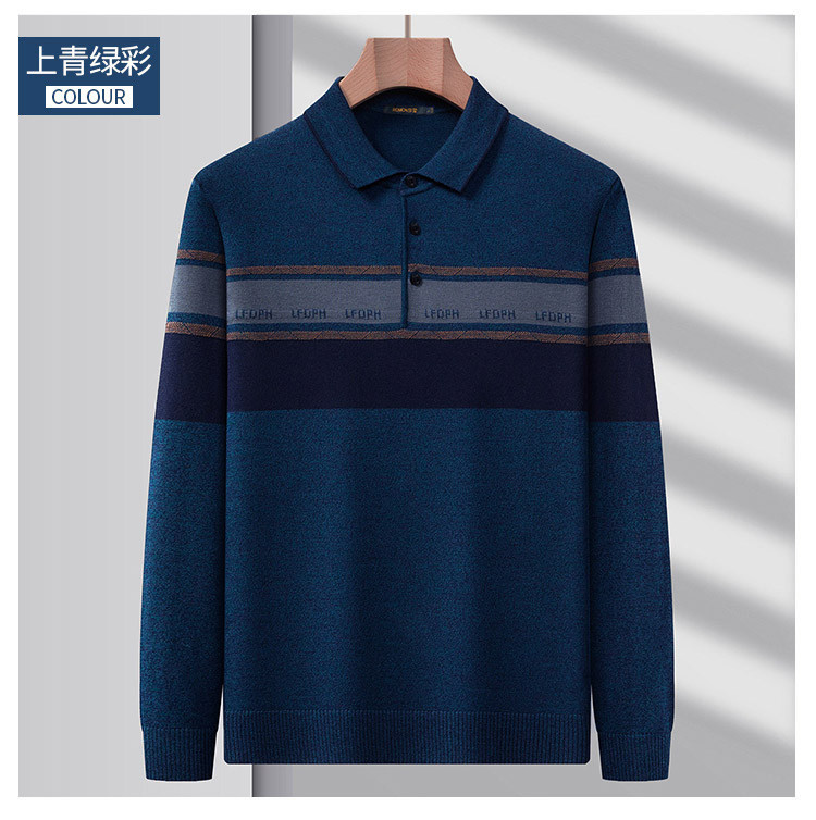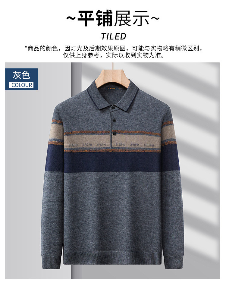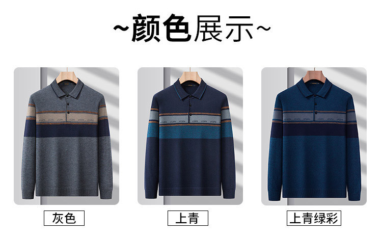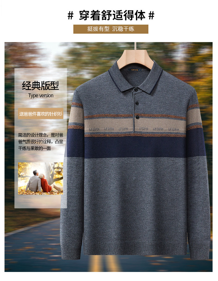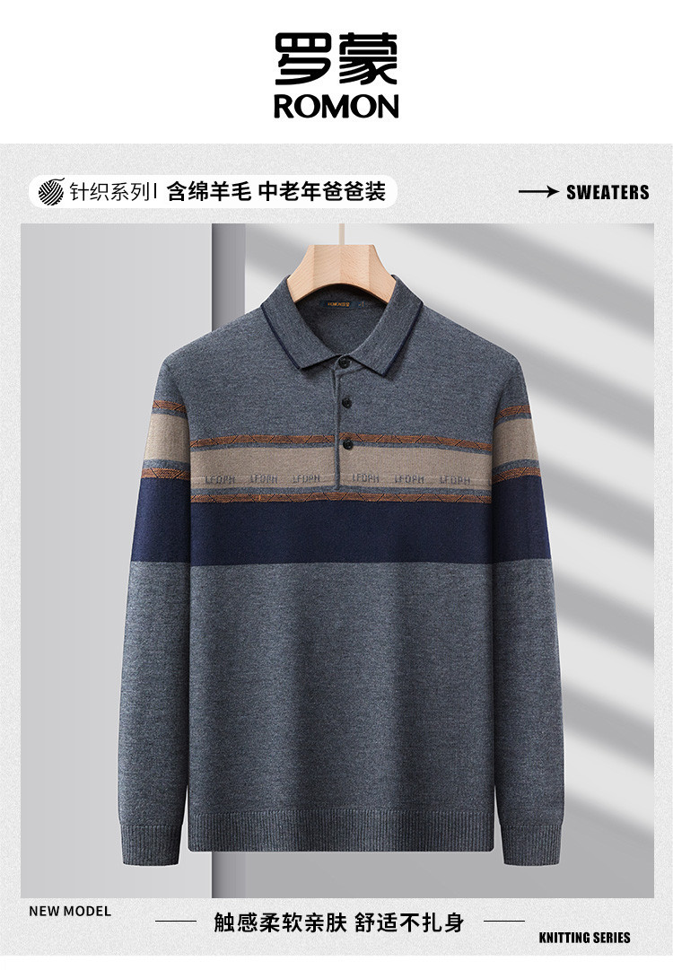 【含羊毛】罗蒙秋冬男士经典横条针织衫男商务polo衫男长袖中老年爸爸装