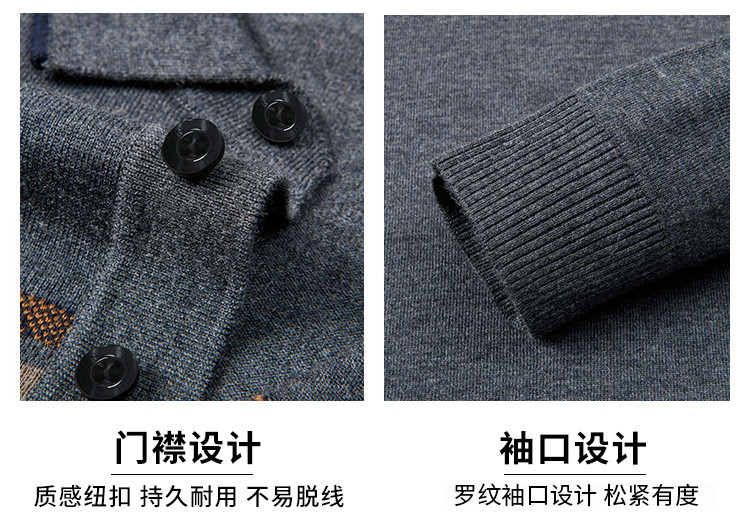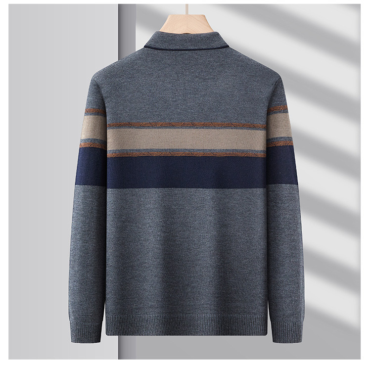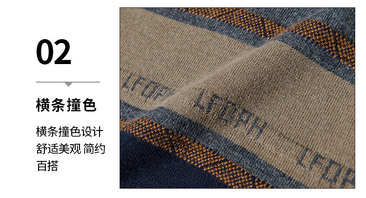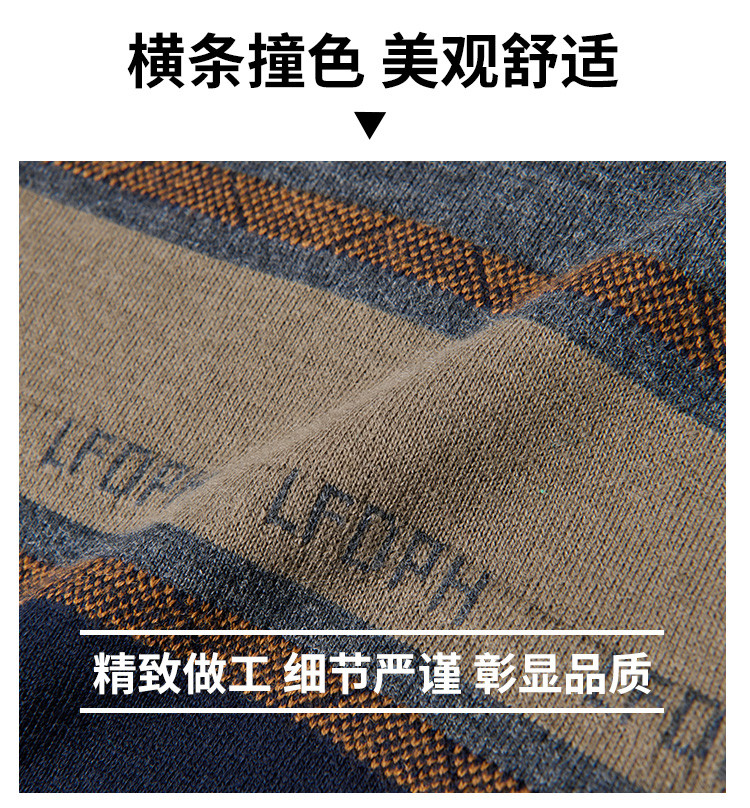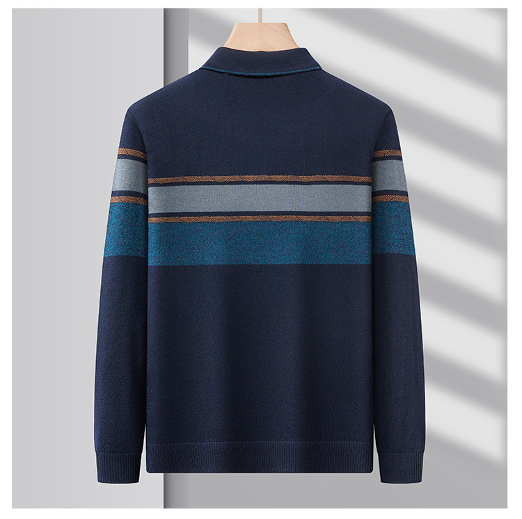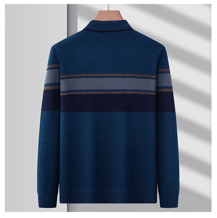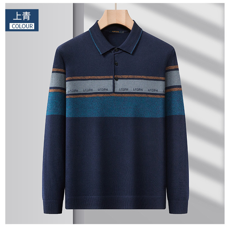 【含羊毛】罗蒙秋冬男士经典横条针织衫男商务polo衫男长袖中老年爸爸装