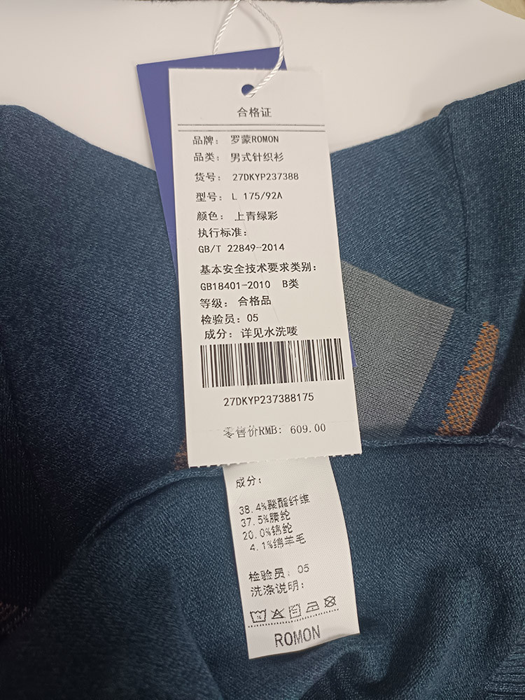 聚酯纤维38.4% 腈纶37.5% 锦纶20.0% 绵羊毛4.1%;上青绿彩(加绒)、上青(加绒)、灰色(加绒):锦纶 42.5 腈纶 28.2 聚酯纤维 26.4 绵羊毛 2.9