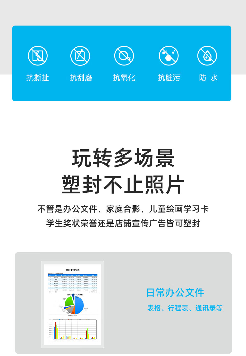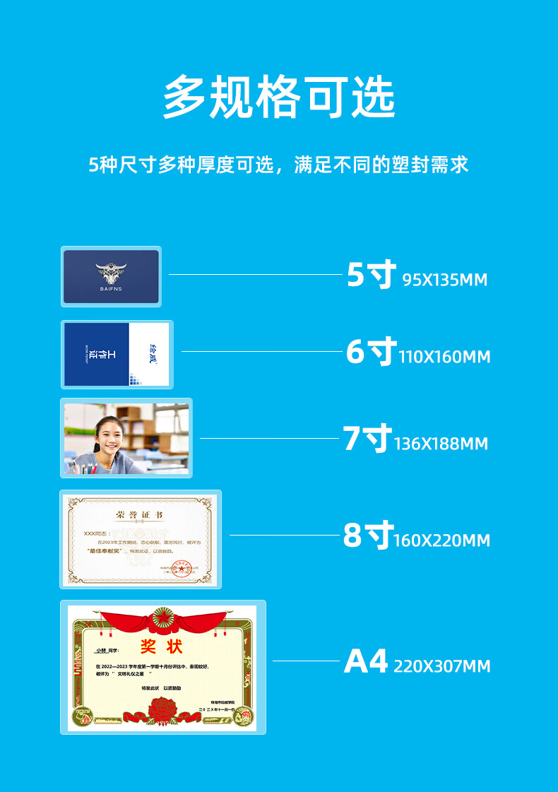绘威6寸 7丝 文件过塑机塑封机膜过塑纸 照片过塑膜 优质专用护卡膜/塑封膜 100张/包 70厚度