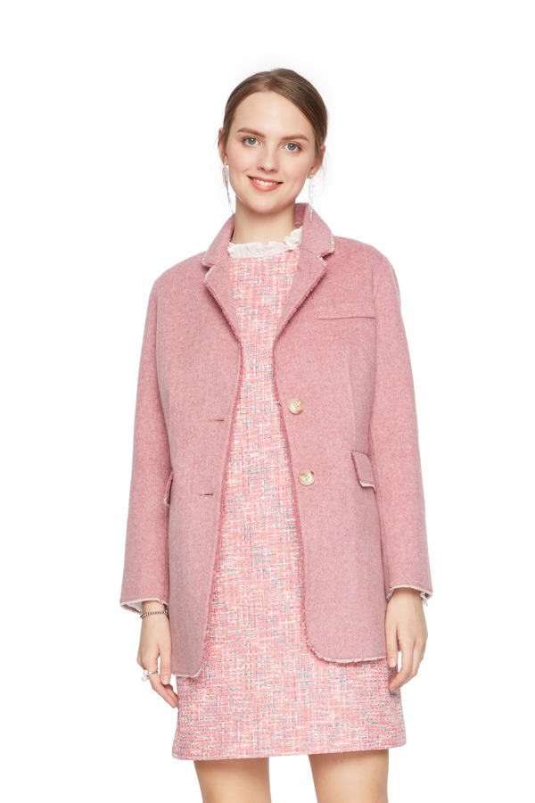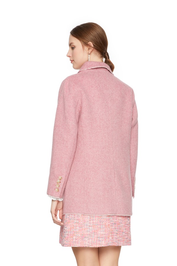 ELLA JADE 粉色流苏边羊毛大衣 4909