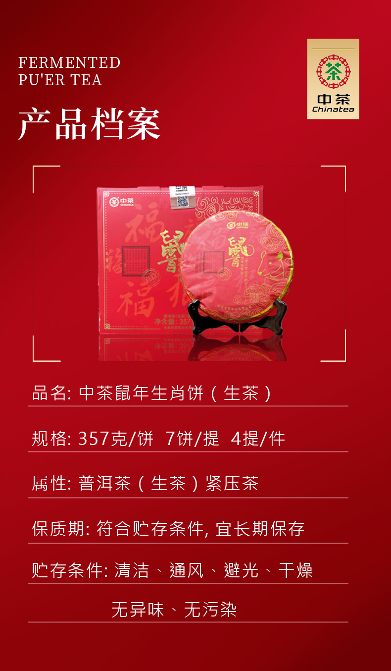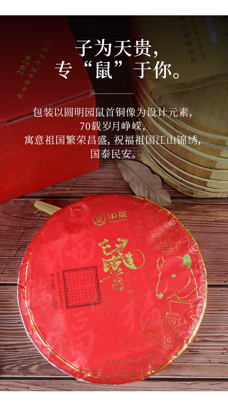 中粮-中茶2020年农历庚子鼠年(生茶)云南勐海七子饼茶357克/干仓直发