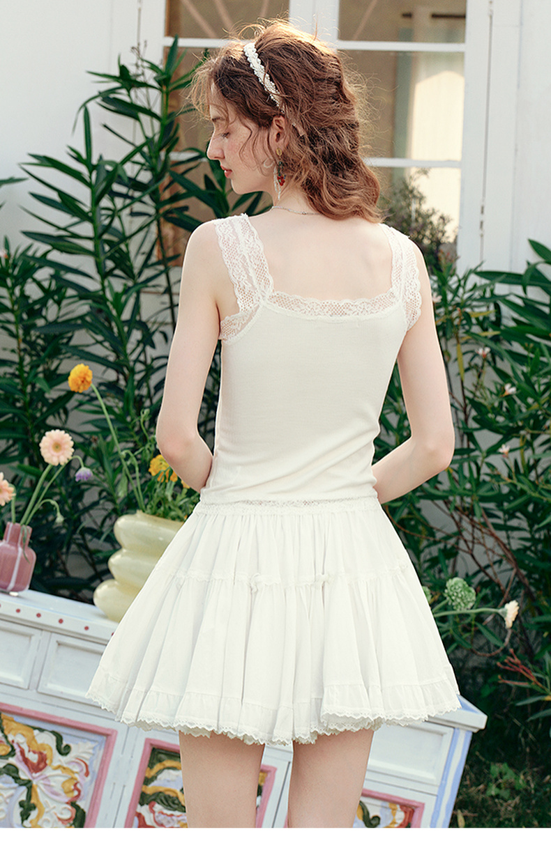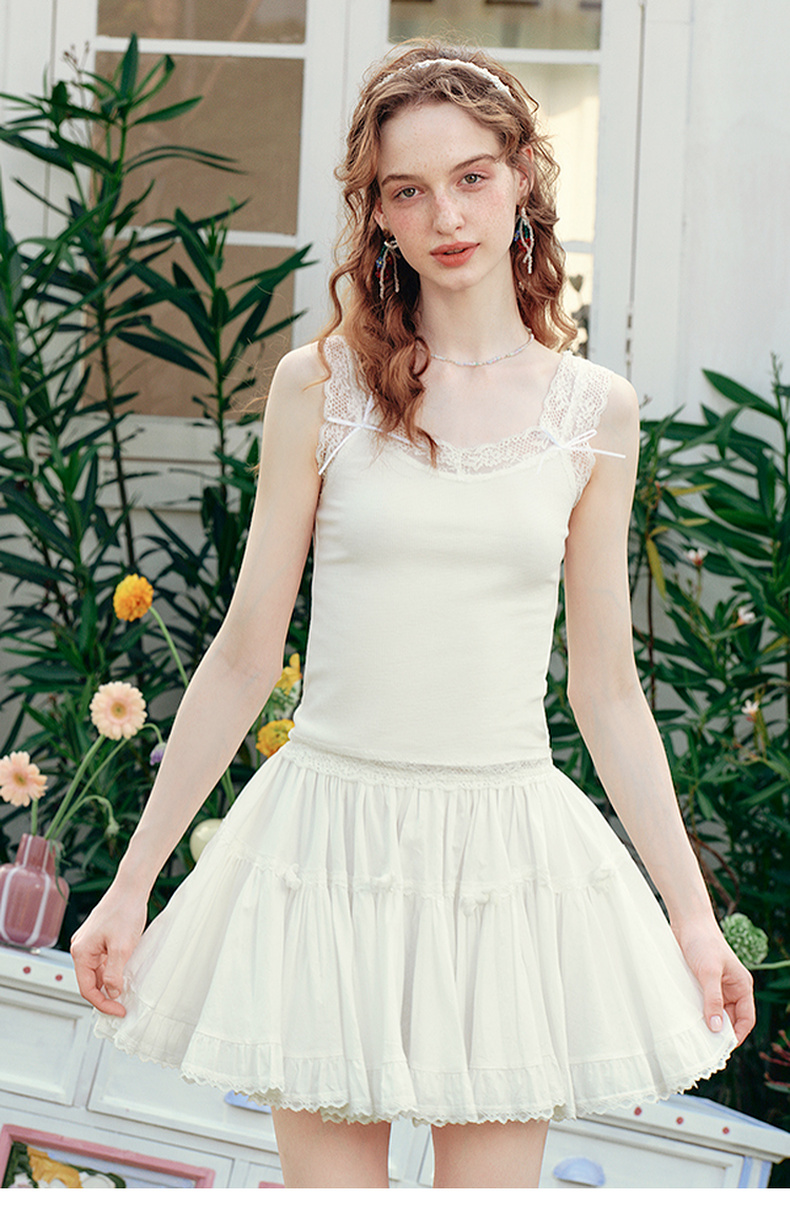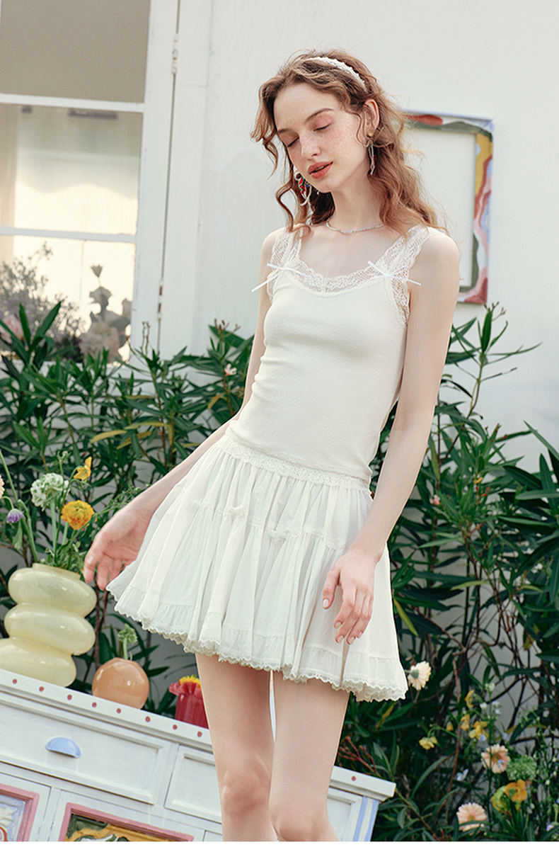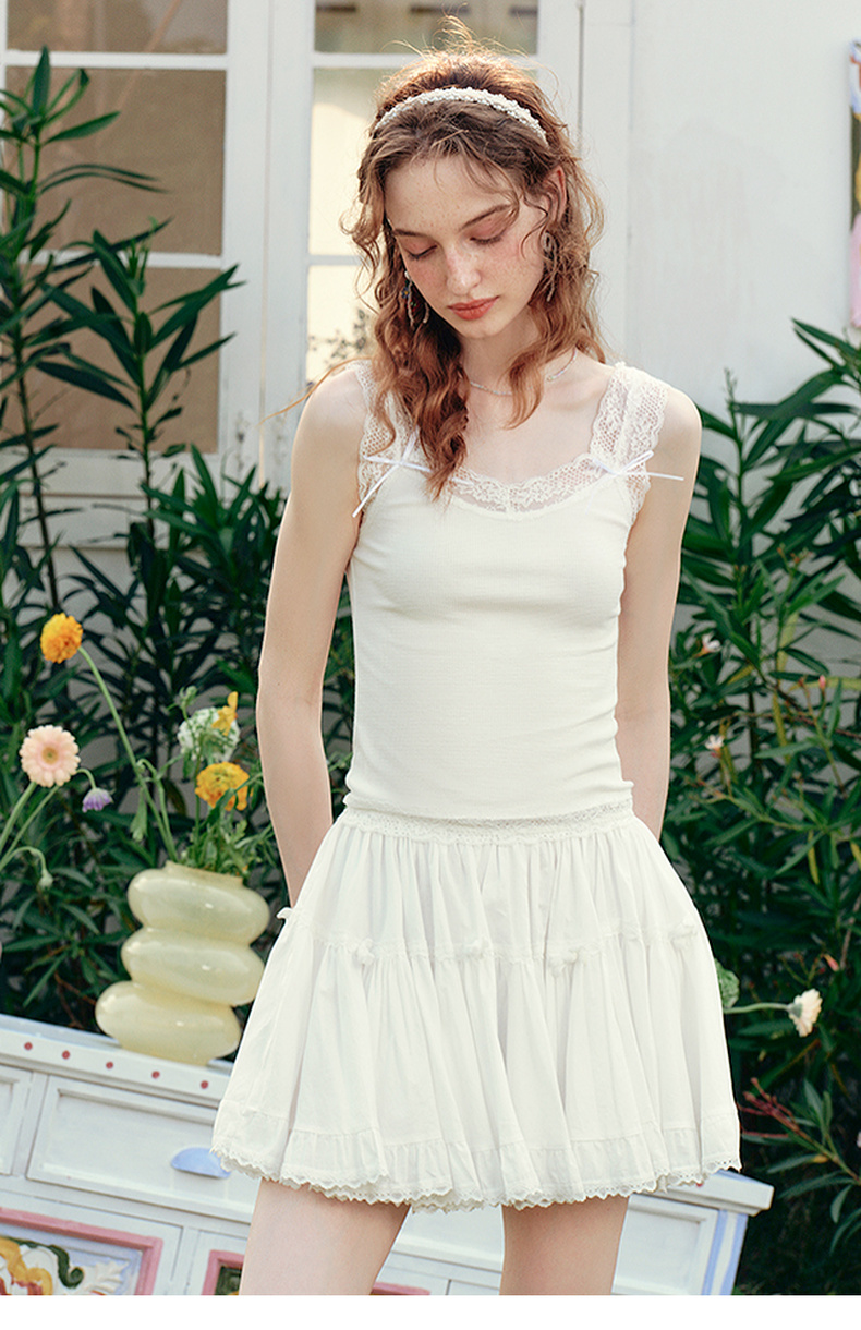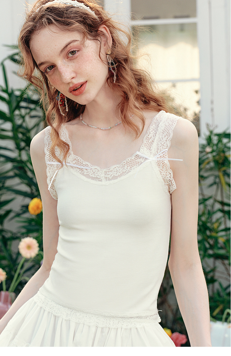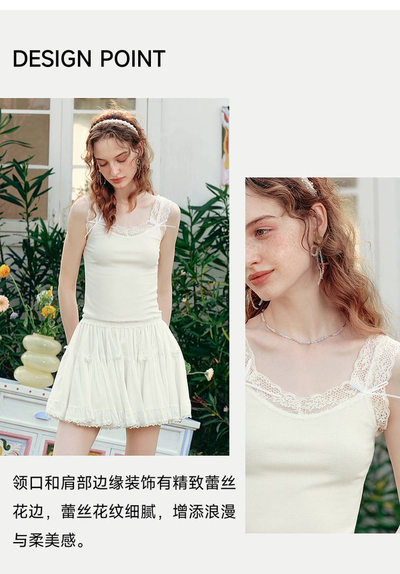 两三事 月光碎梦 2025夏季新款百搭蕾丝拼接打底外穿背心女