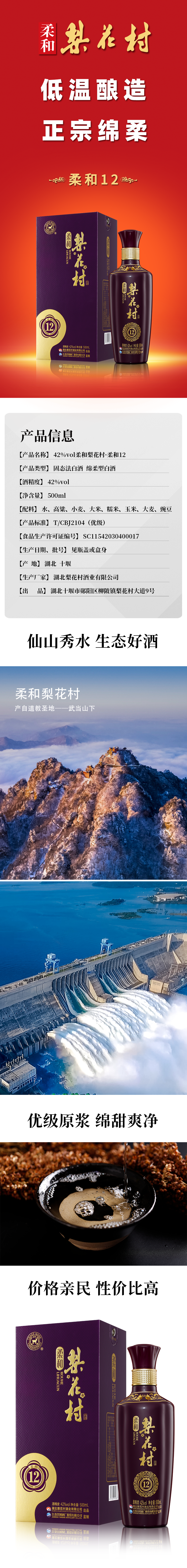 梨花村 新版柔和系列白酒 浓香型 柔和12 42度500ml 一箱4瓶装