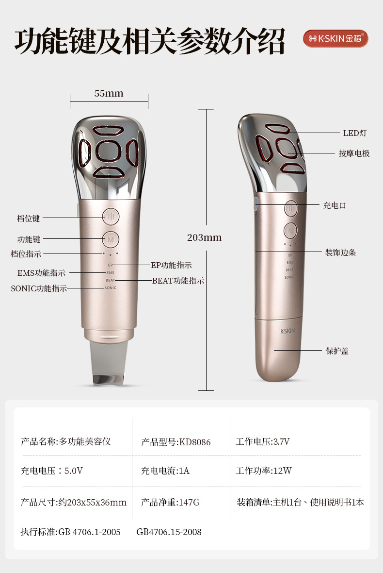 金稻美容仪家用脸部提升塑形紧致面部按摩导入淡化细纹清洁器提拉
