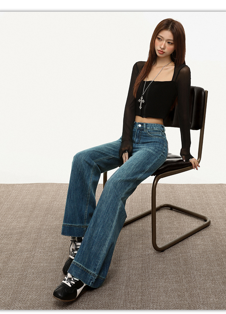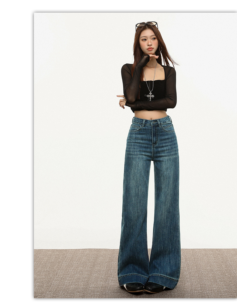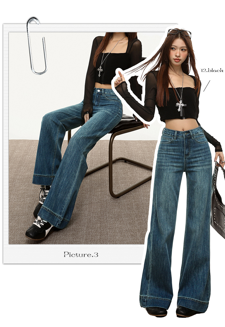 【加绒加厚】罗蒙女士冬款牛仔裤直筒显瘦微喇裤时尚通勤百搭长裤