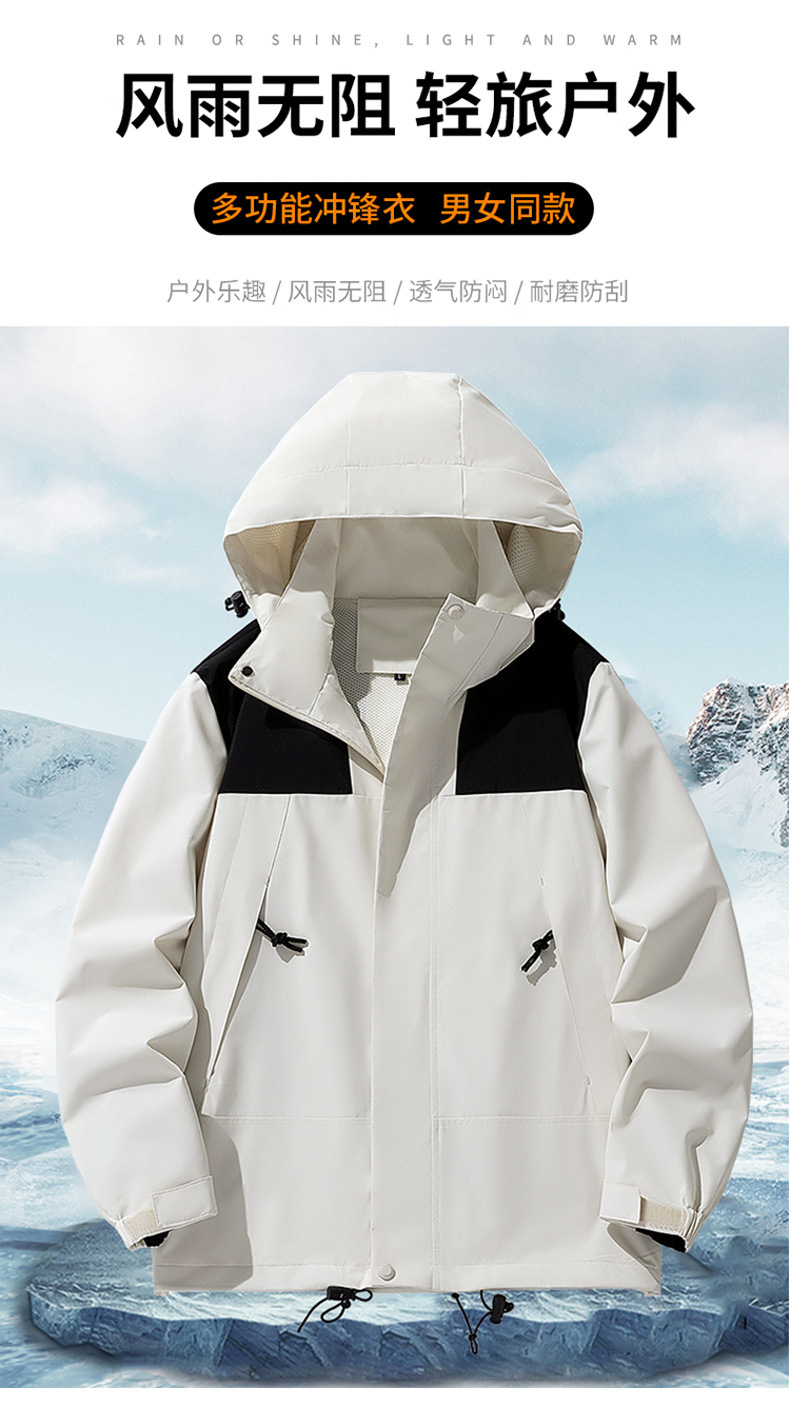 拼接冲锋衣男女秋冬新款连帽青年户外运动休闲防风情侣百搭外套潮