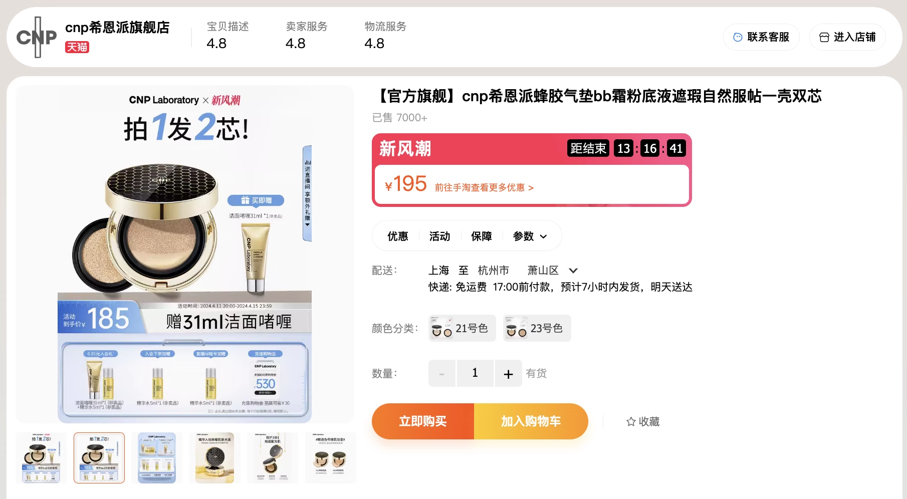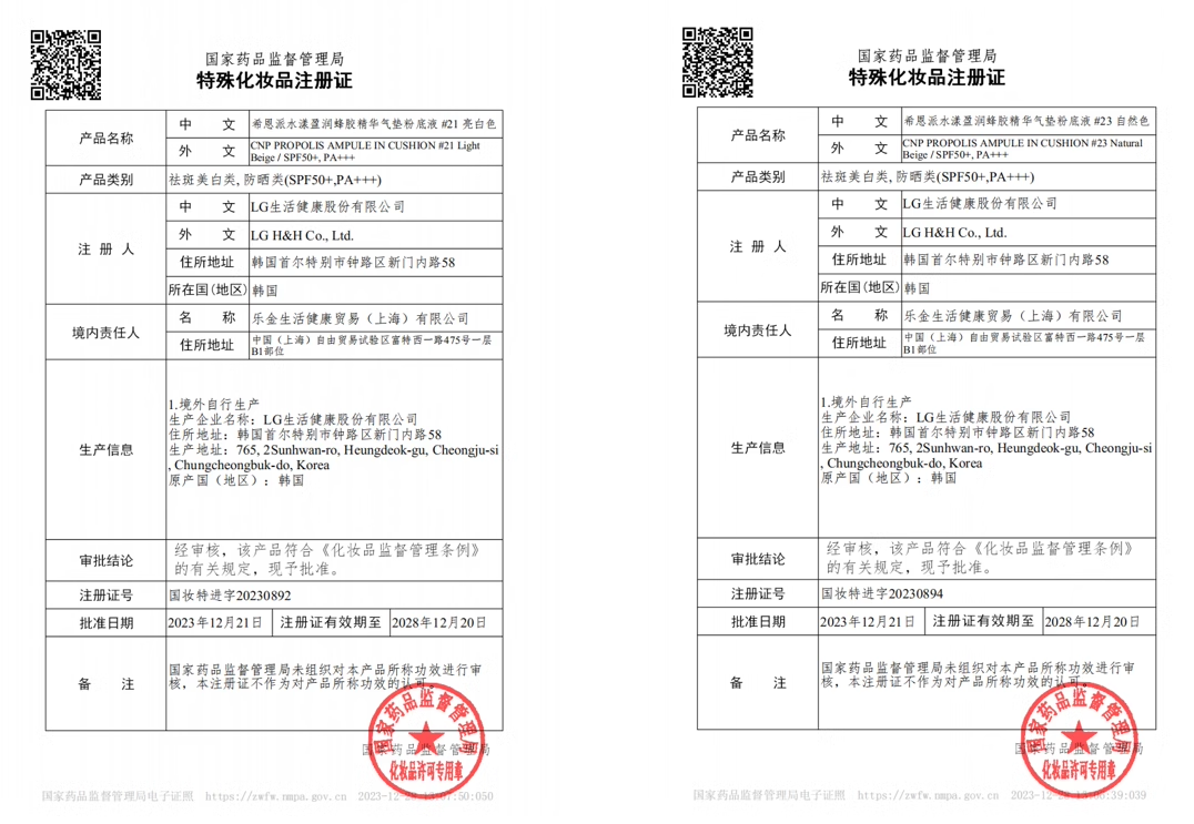 『CNP水漾盈润蜂胶气垫粉底液』