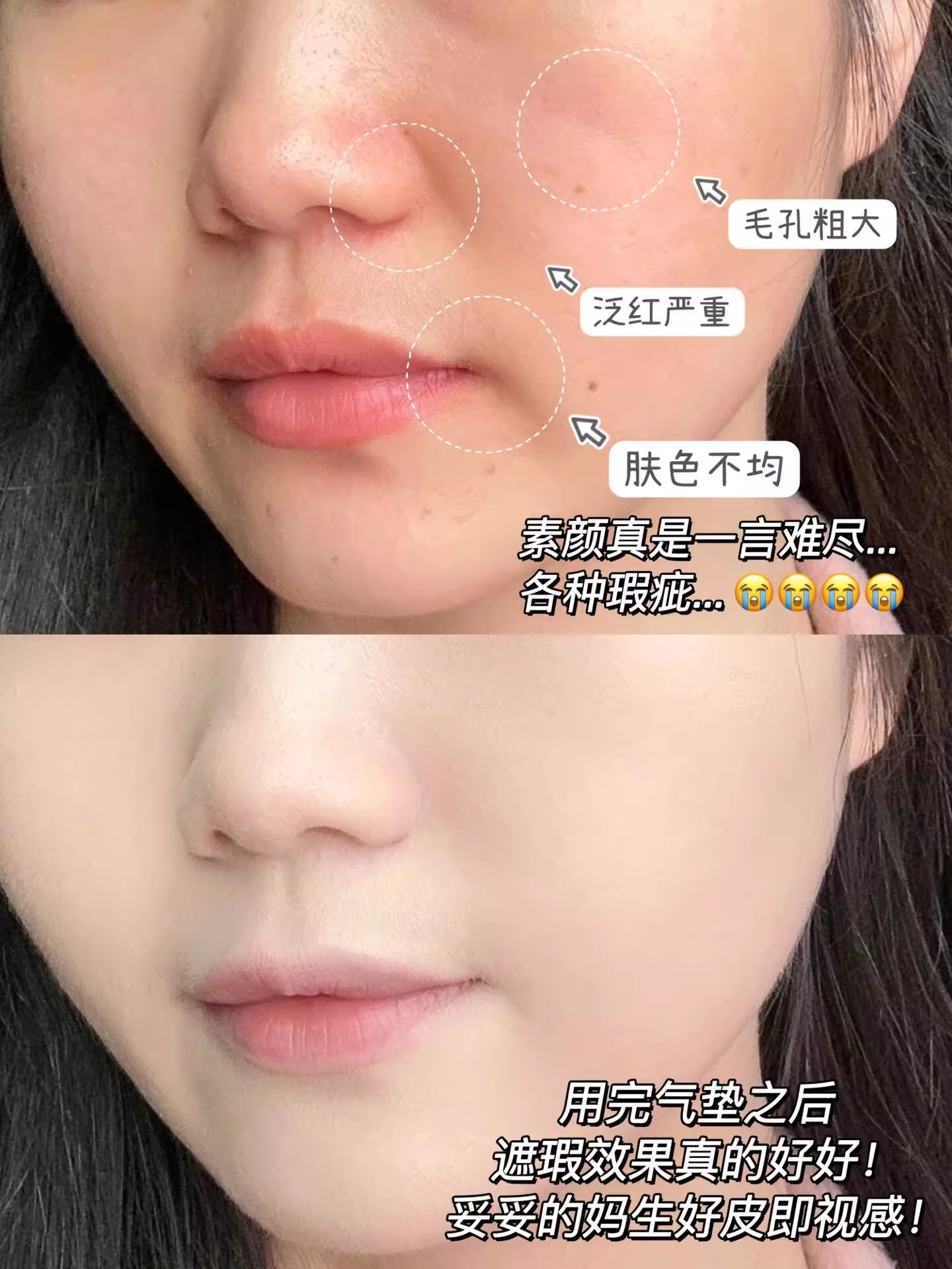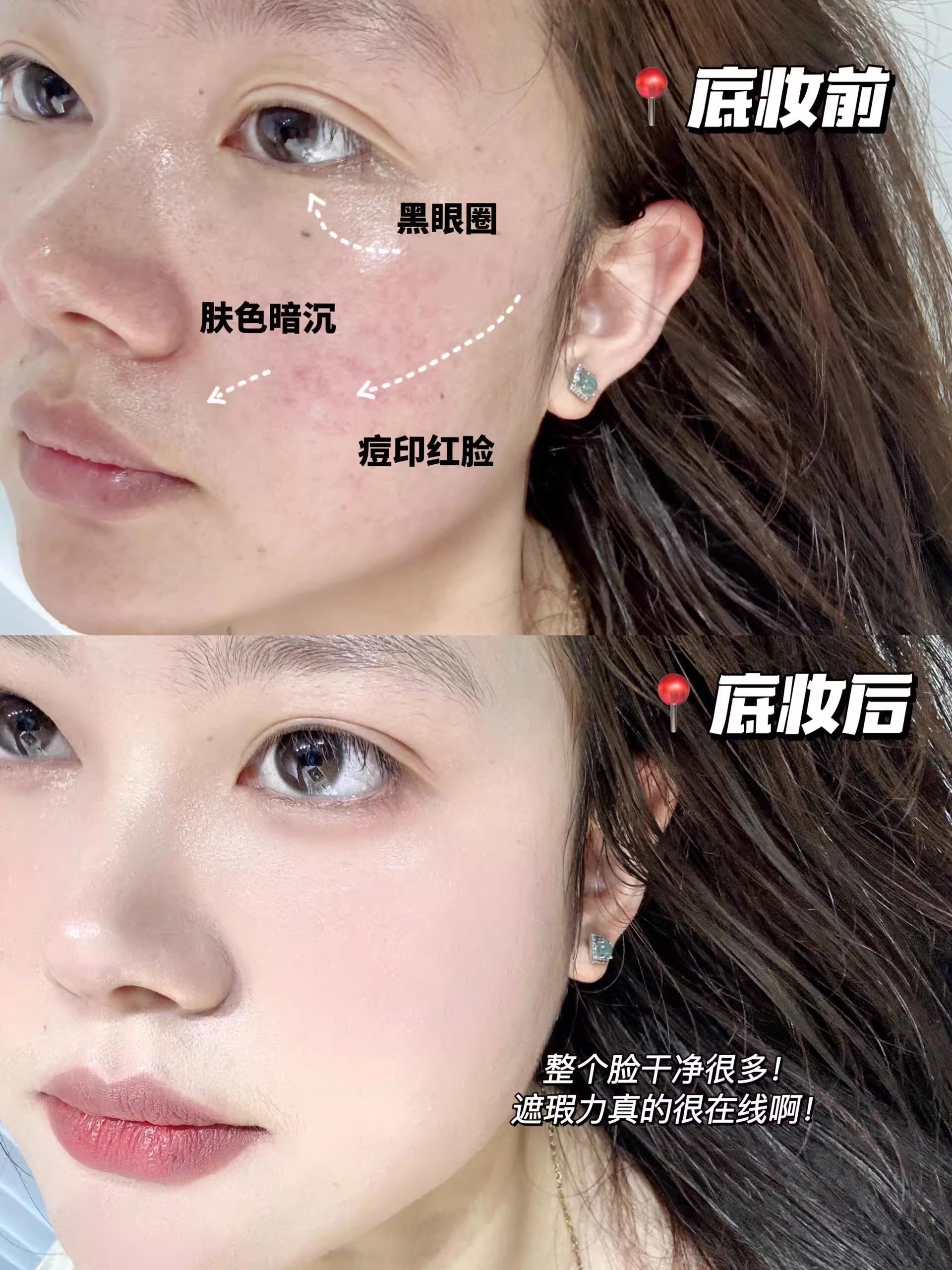 黑眼圈、瑕疵痘印、泛红部位都能完美遮住