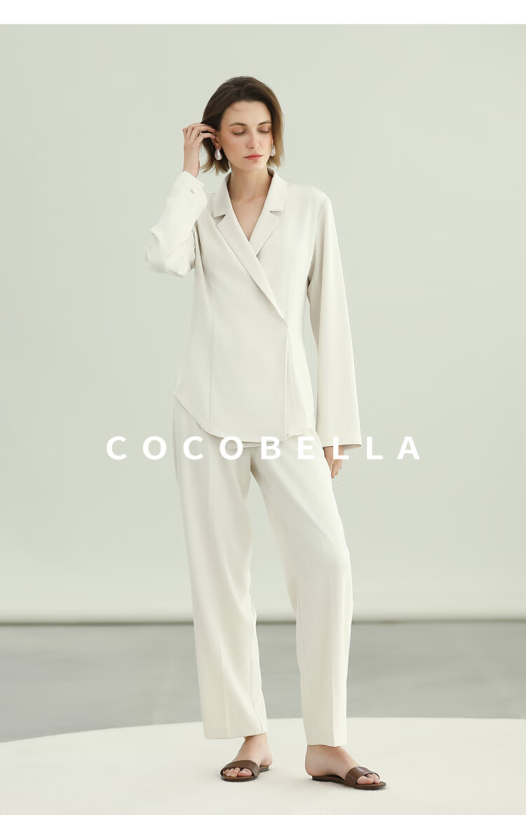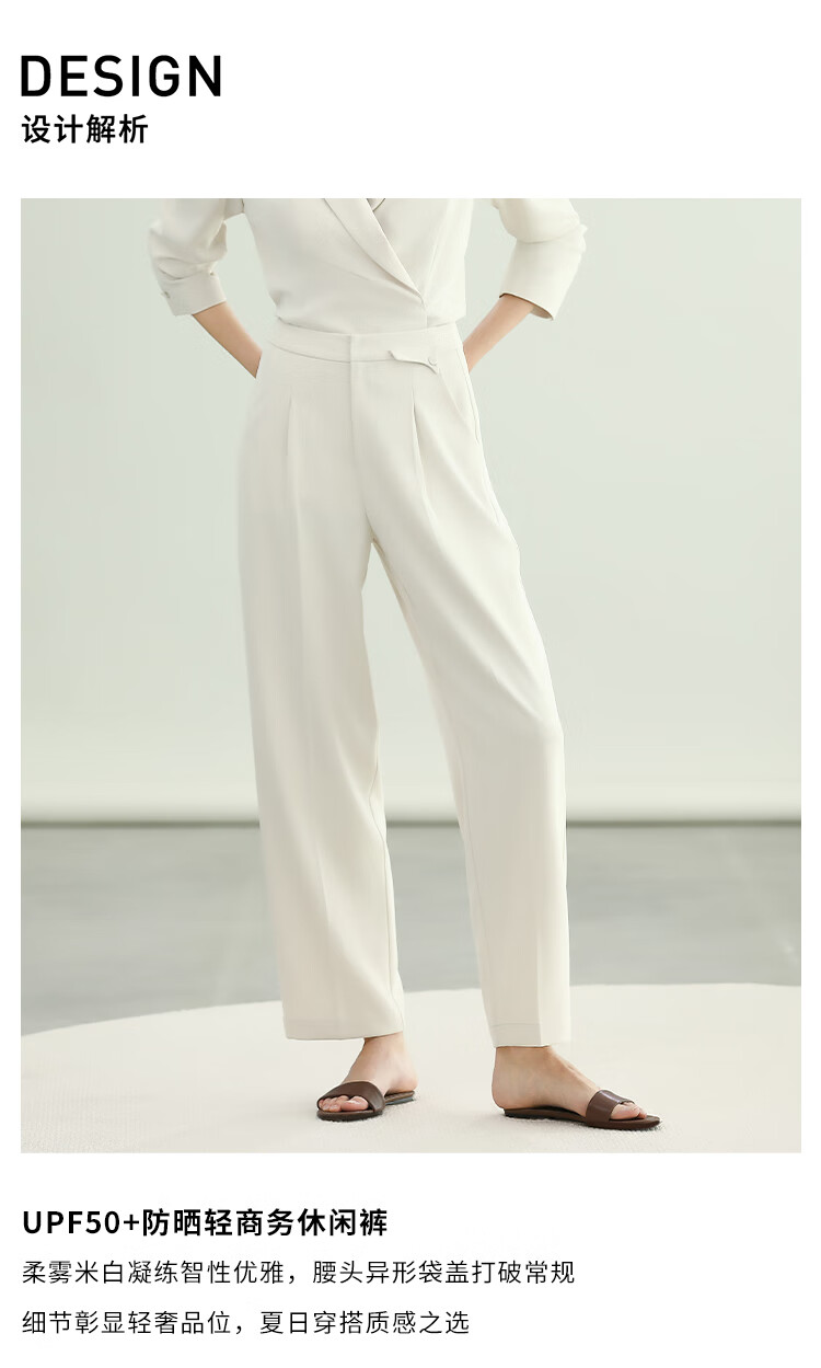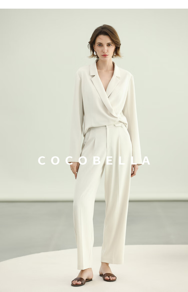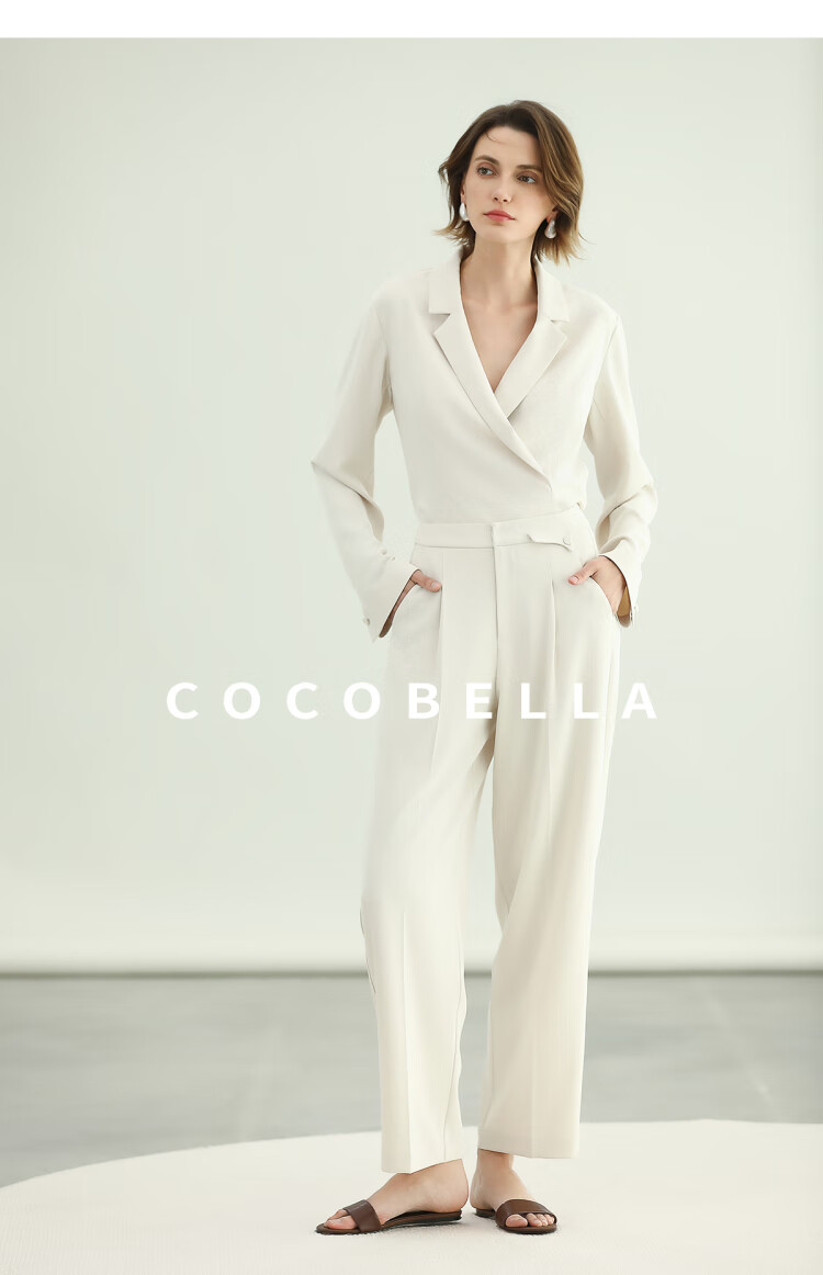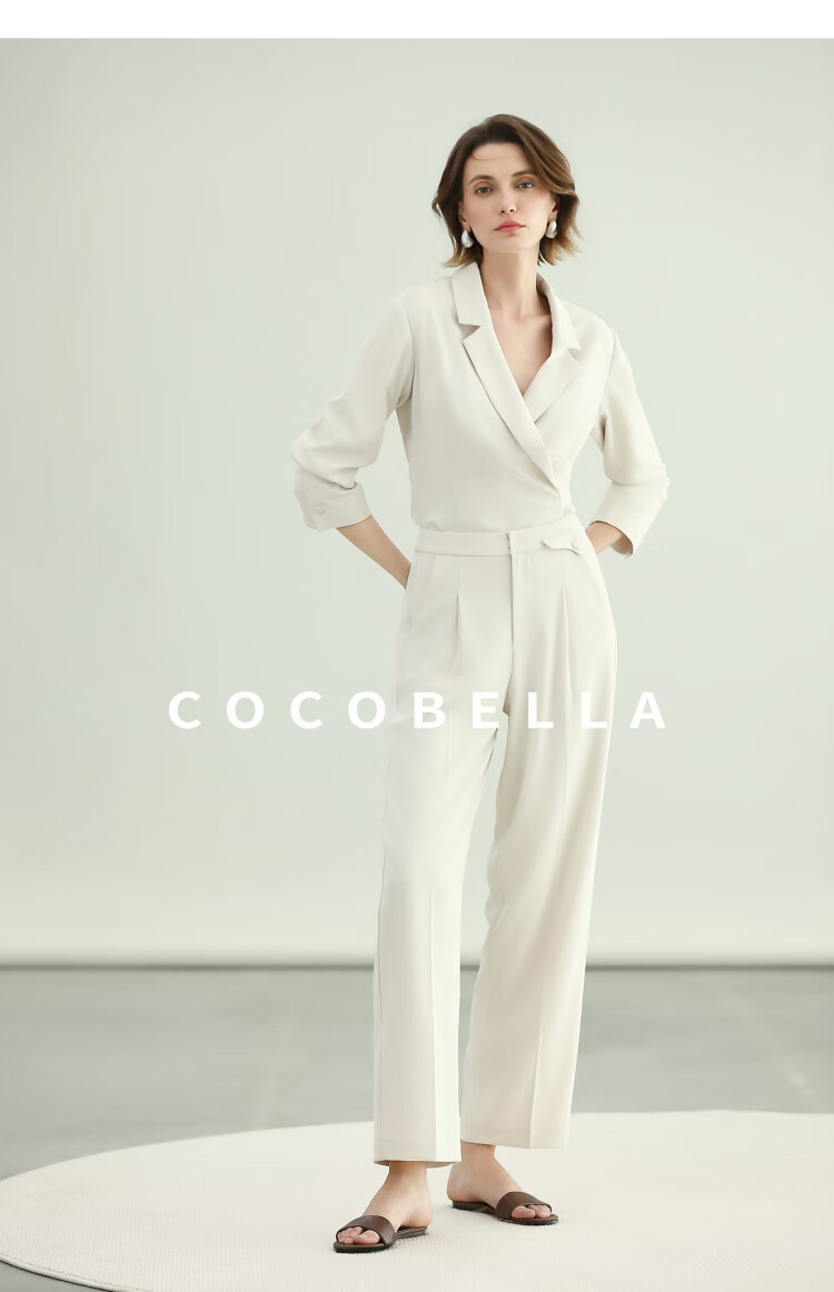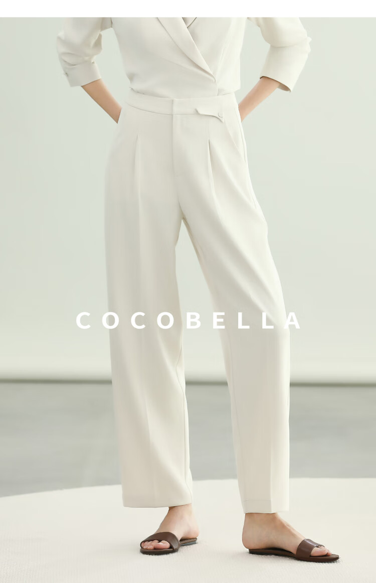 COCOBELLA[防晒UPF50+]凉感休闲裤女25夏奢感捏褶长裤PA0031
