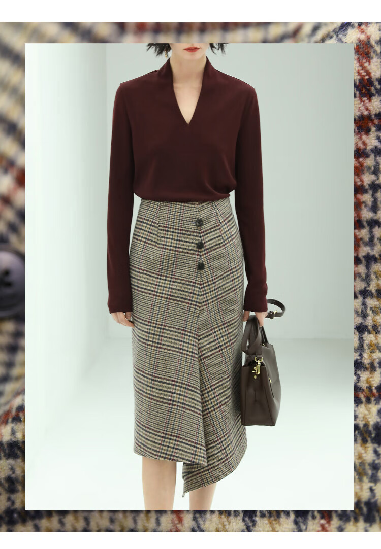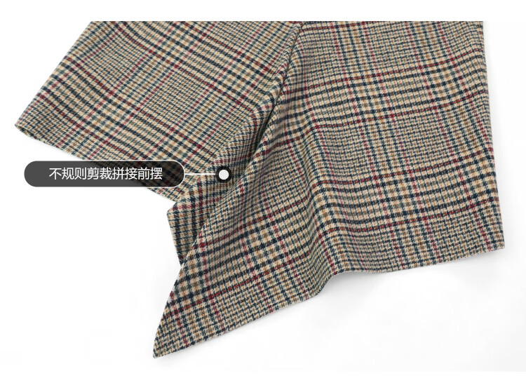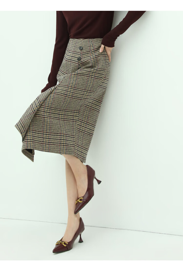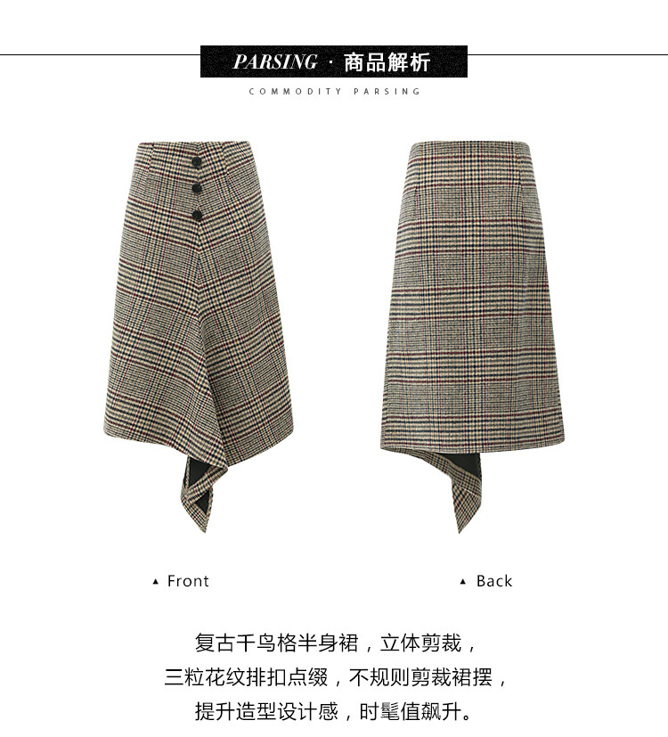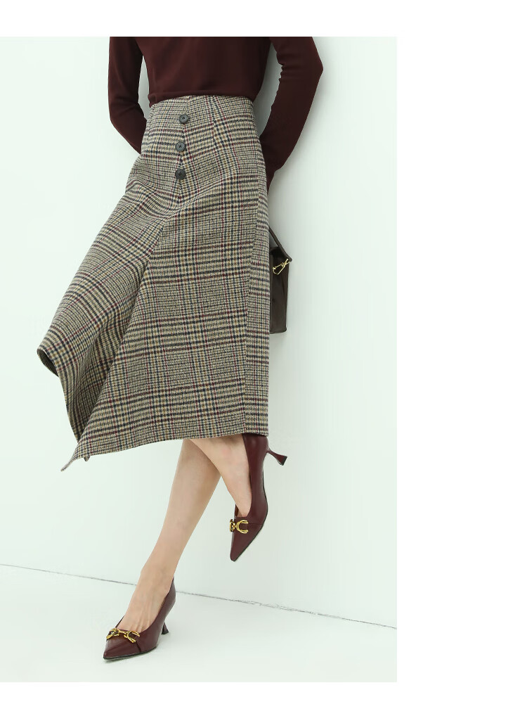 【有赞】HS95COCOBELLA千鸟格不规则半身裙高腰通勤毛呢西装裙