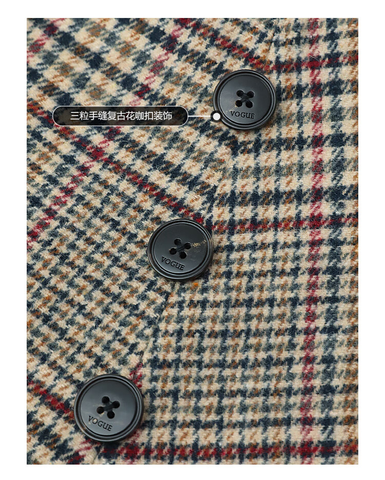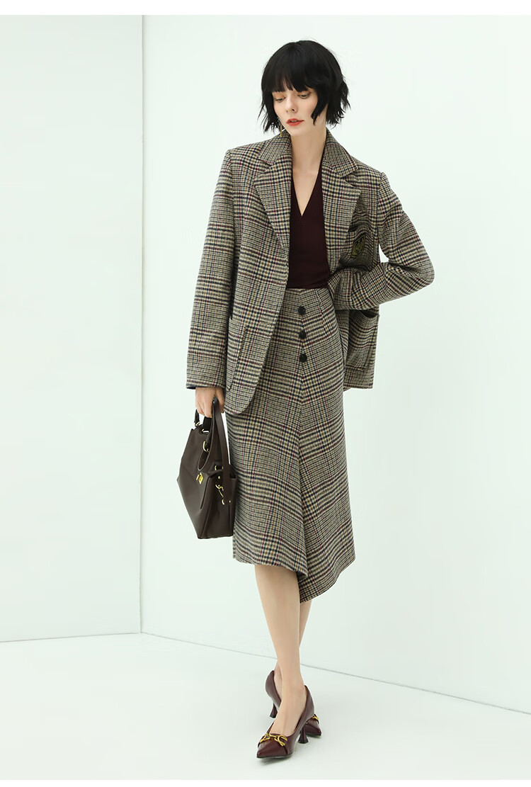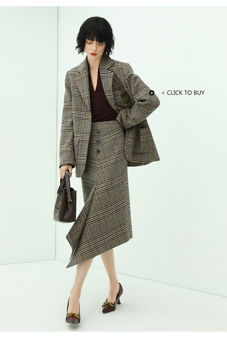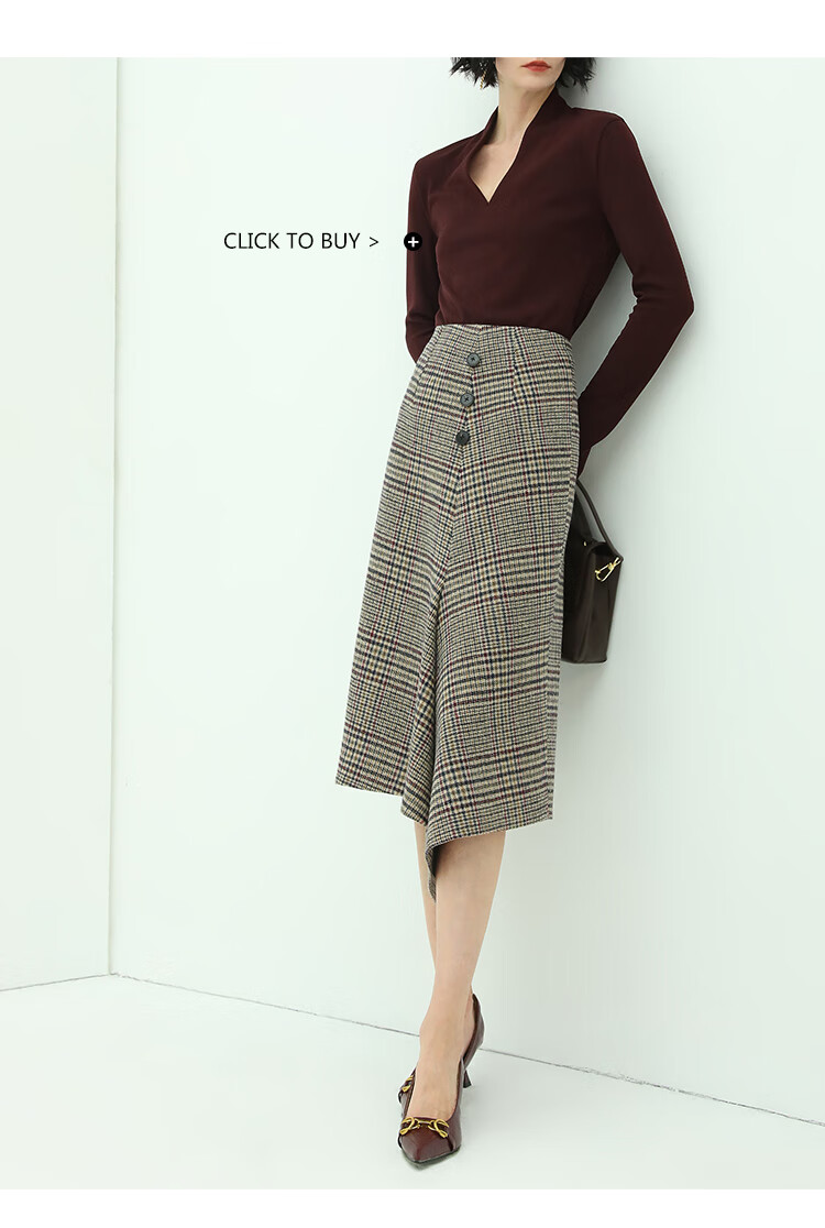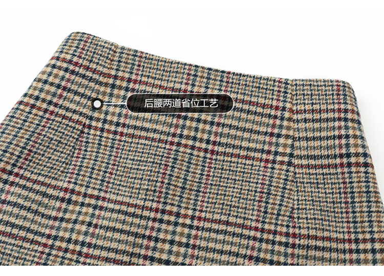 【有赞】HS95COCOBELLA千鸟格不规则半身裙高腰通勤毛呢西装裙
