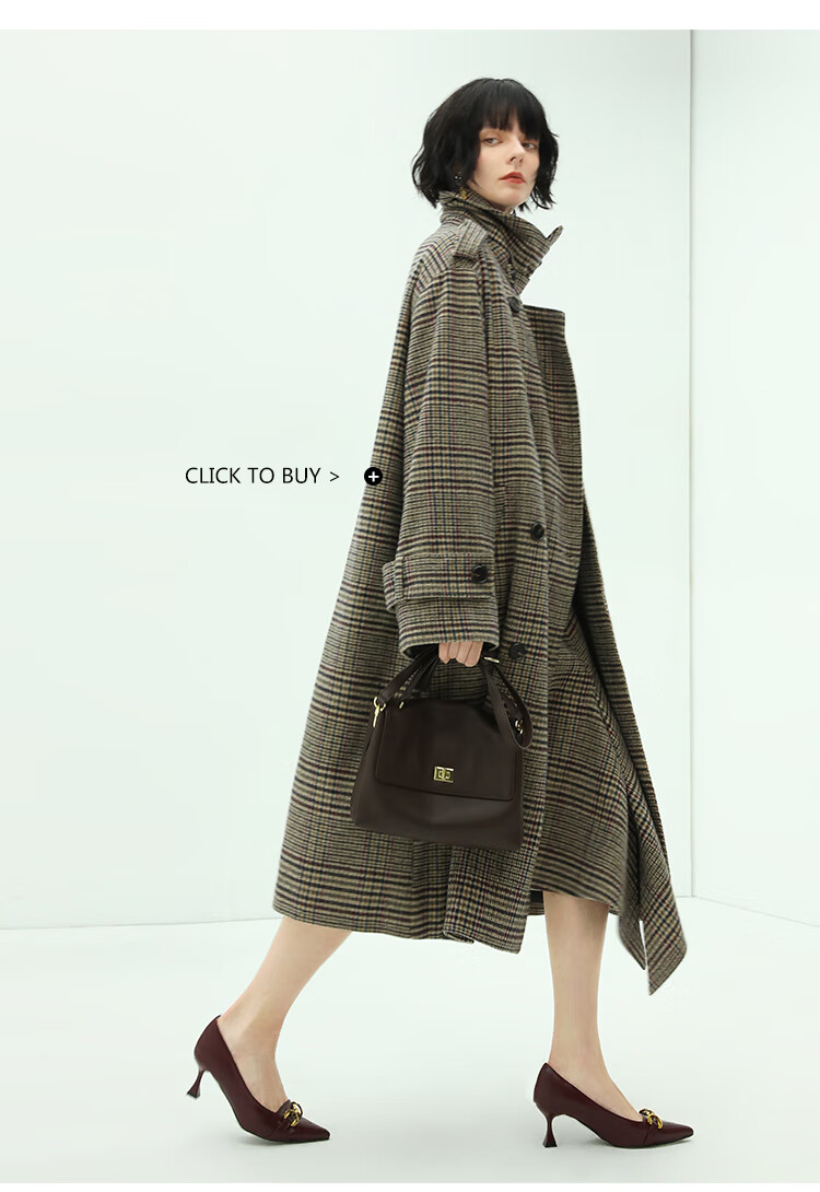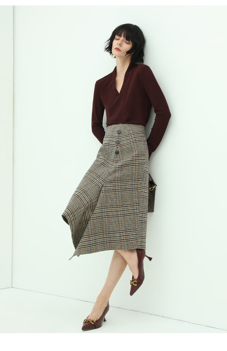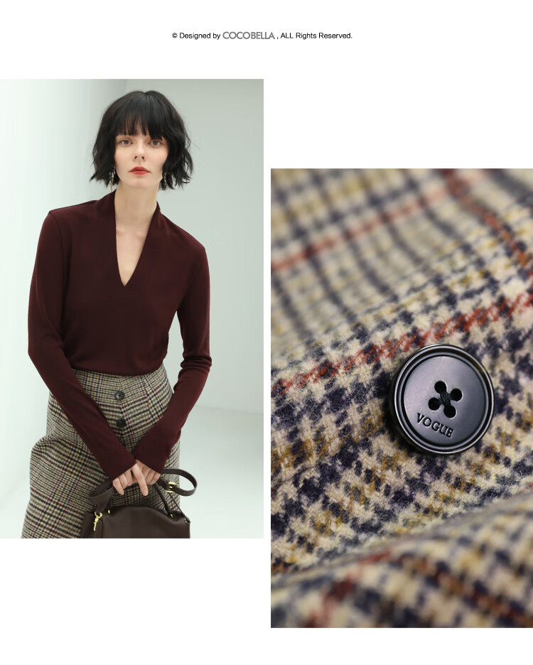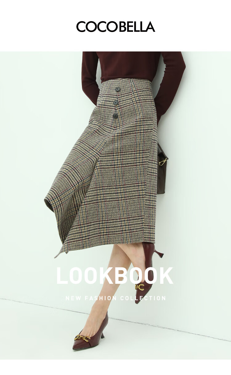 COCOBELLA复古英伦格纹羊毛半身裙中长款通勤半裙HS30
