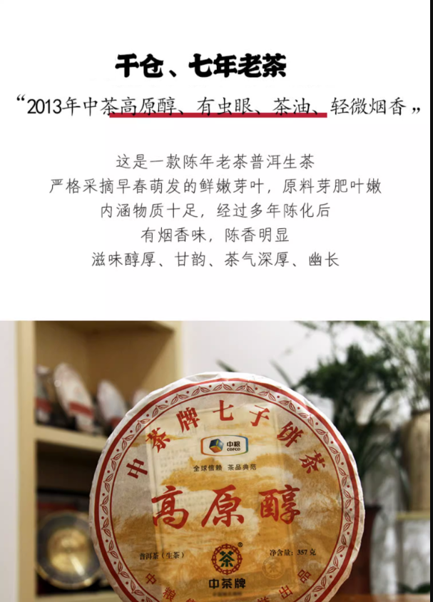 中粮-中茶2013年中茶高原醇普洱茶生茶357g /云南仓直发