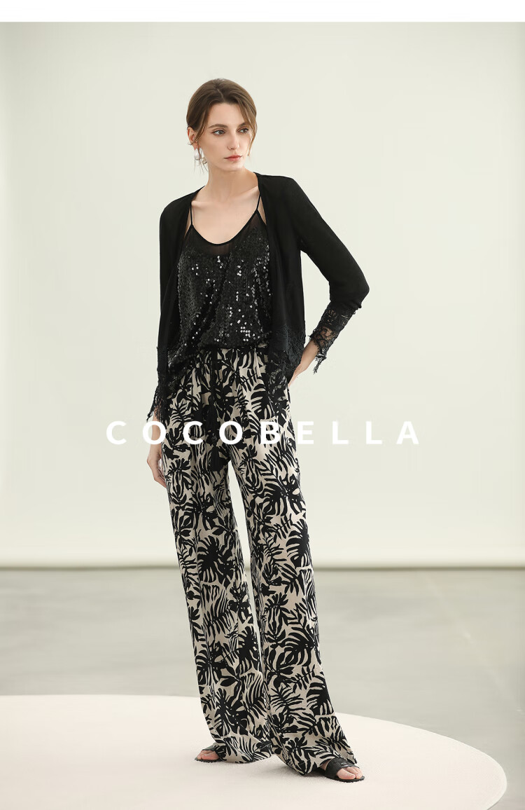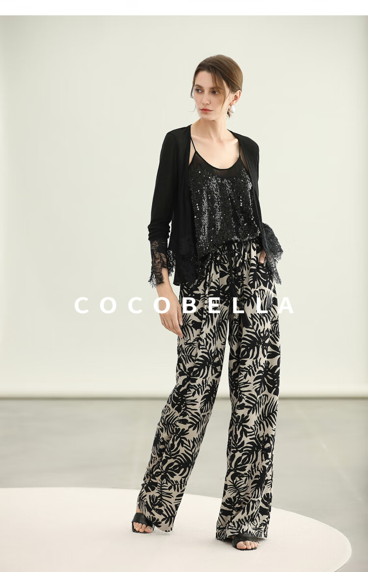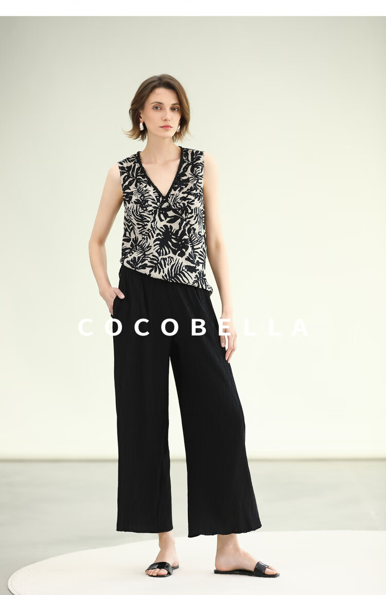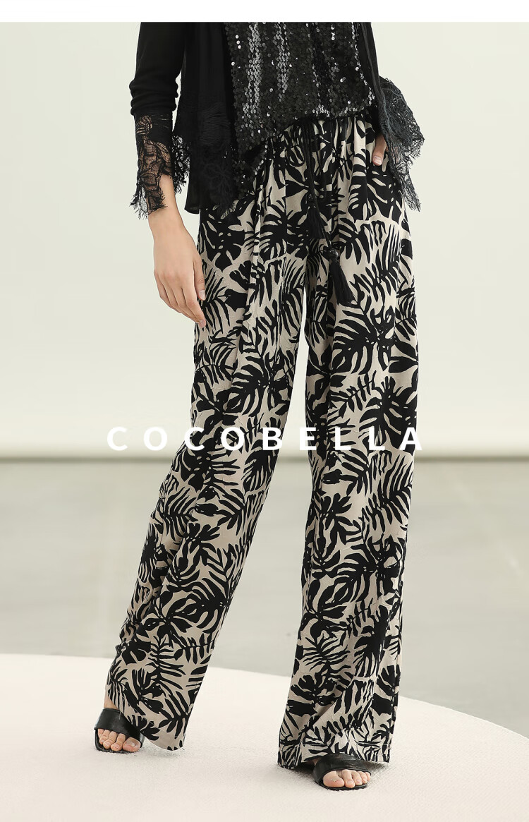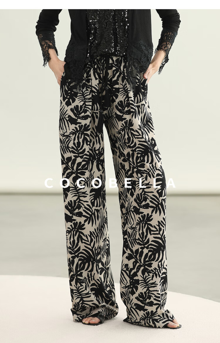 COCOBELLA浪漫南法风印花休闲裤女夏度假风微阔直筒裤PA3085