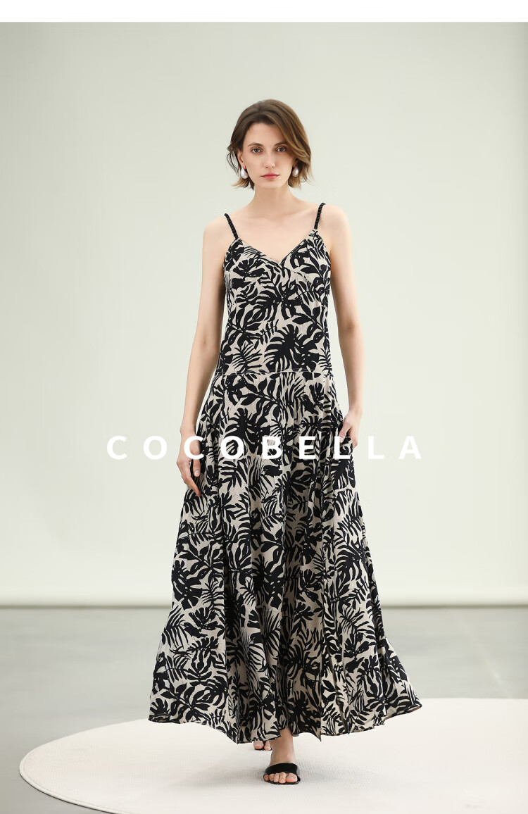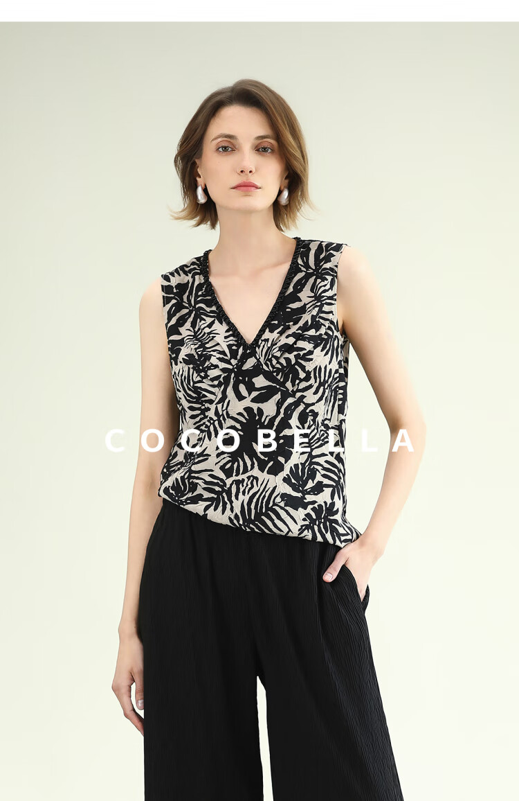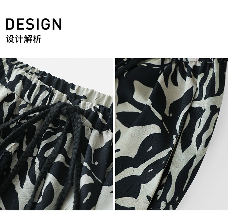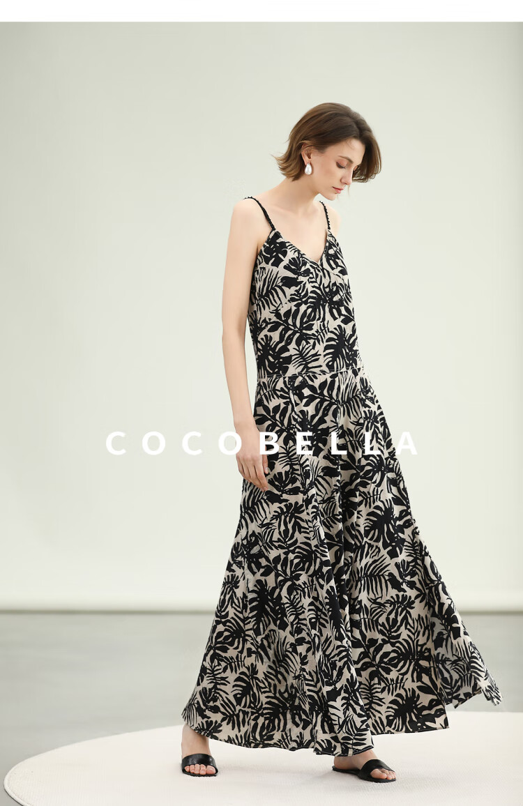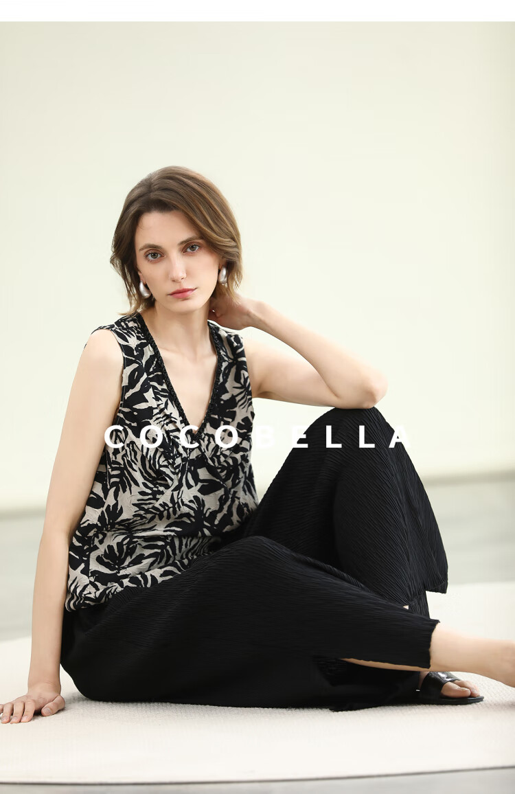COCOBELLA浪漫南法风印花休闲裤女夏度假风微阔直筒裤PA3085