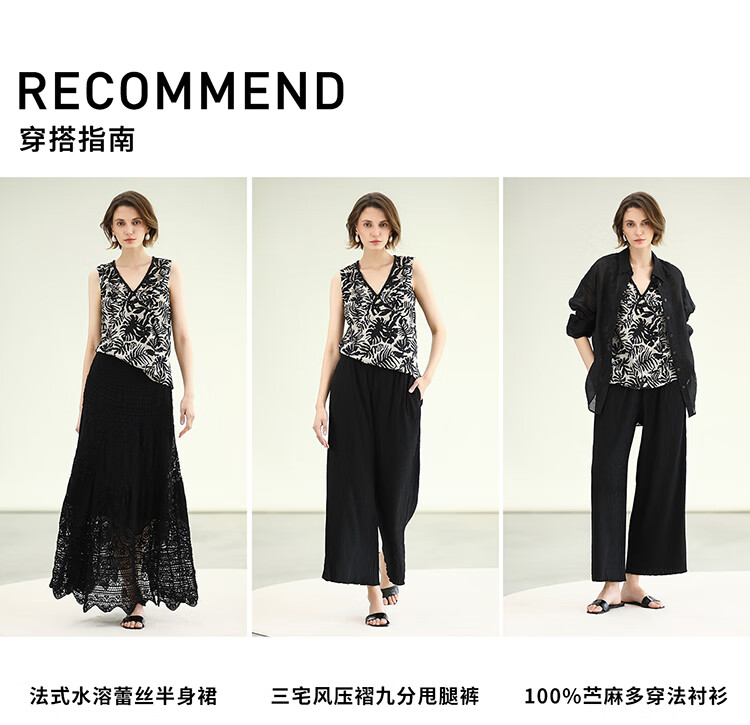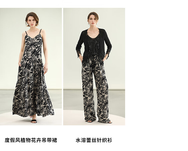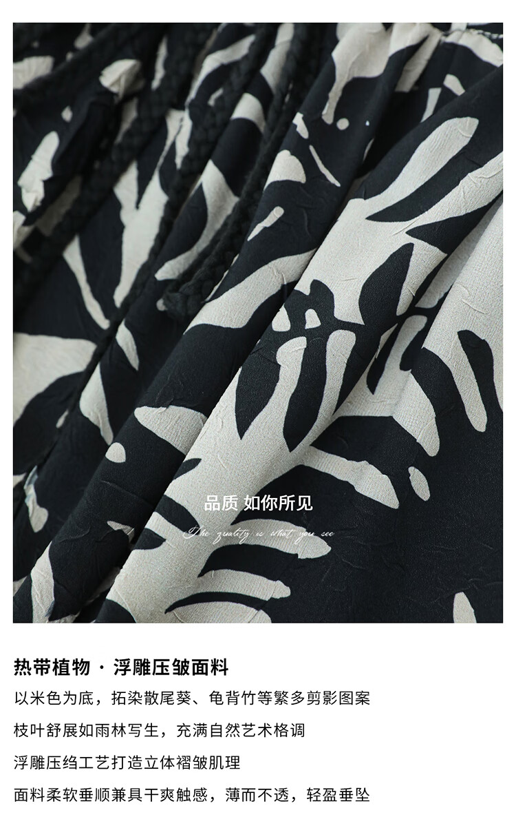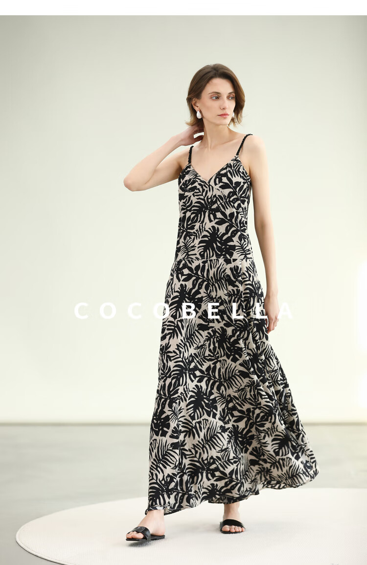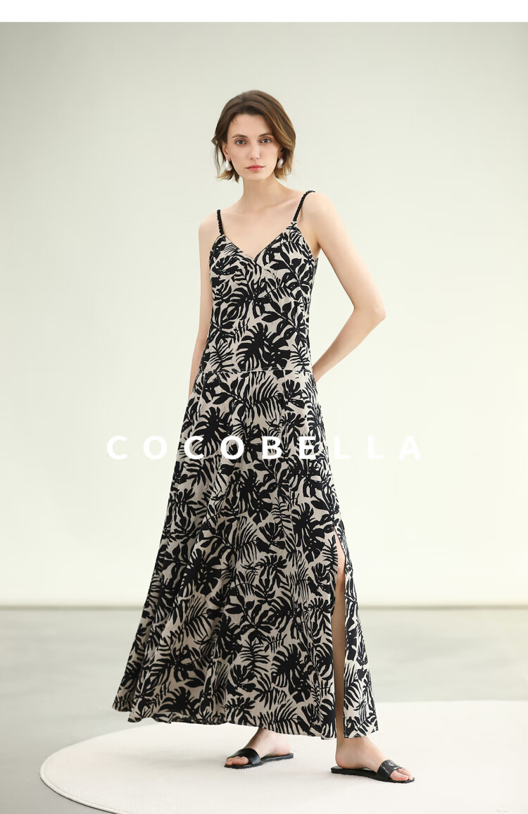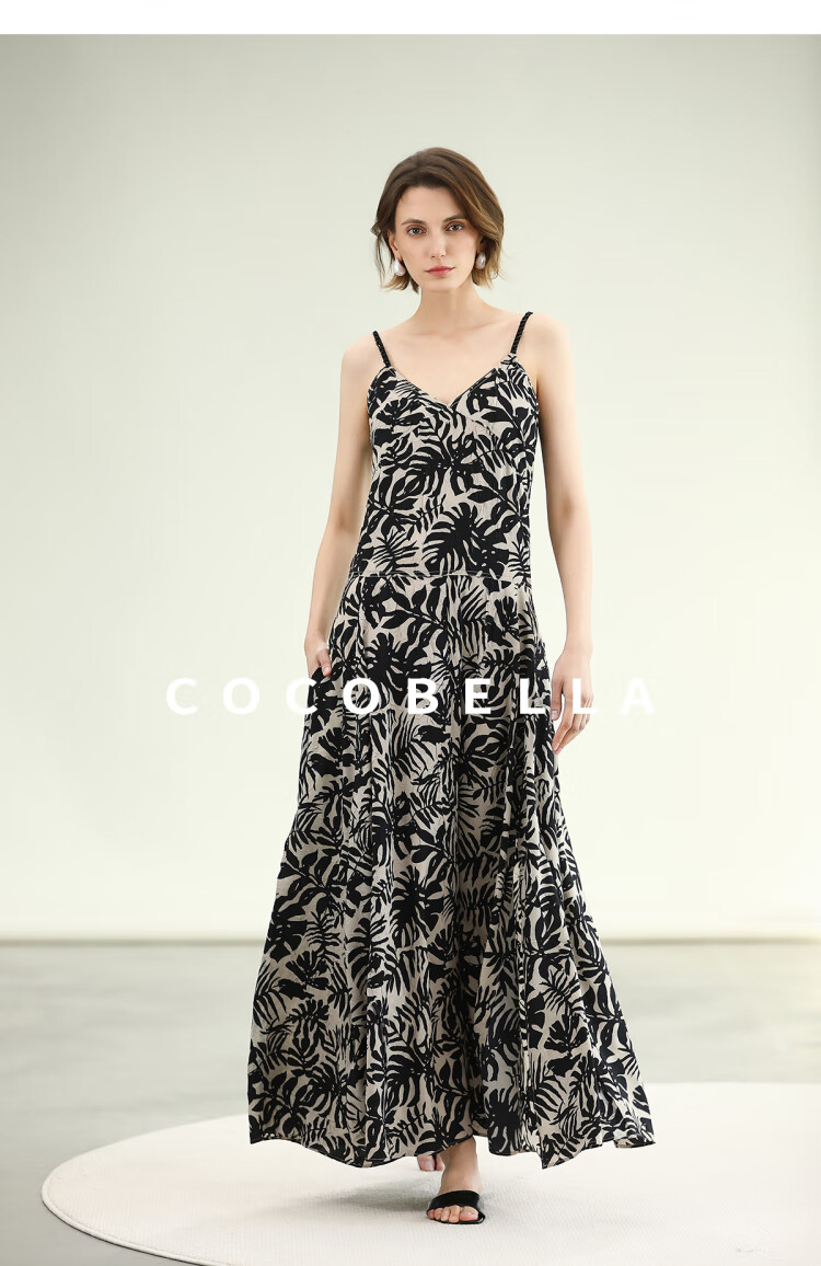 COCOBELLA浪漫南法风印花休闲裤女夏度假风微阔直筒裤PA3085