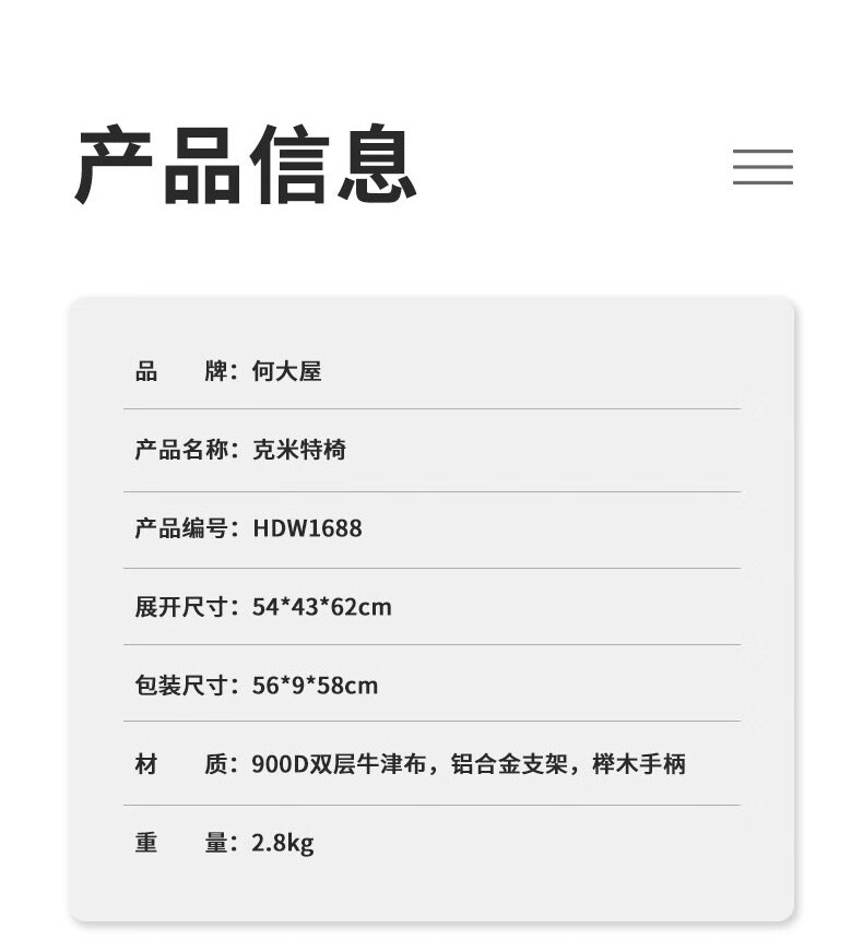 何大屋Hodtown 户外便携折叠椅 复古露营装备 克米特椅 HDW1688