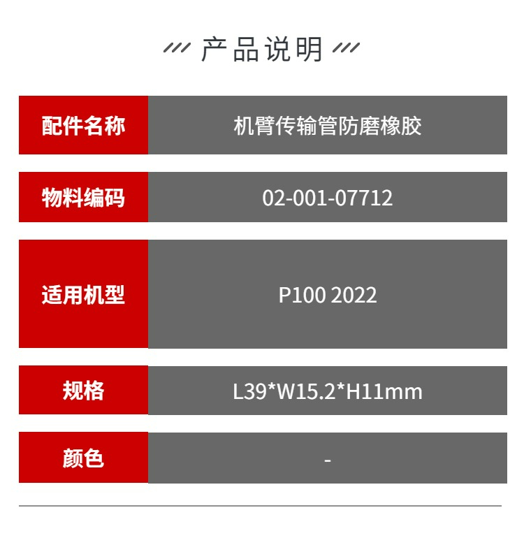 P100 2022 机臂传输管防磨橡胶