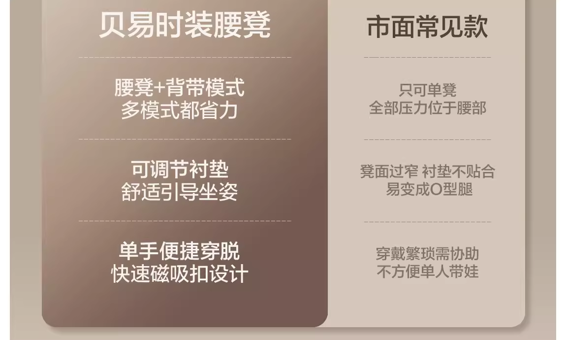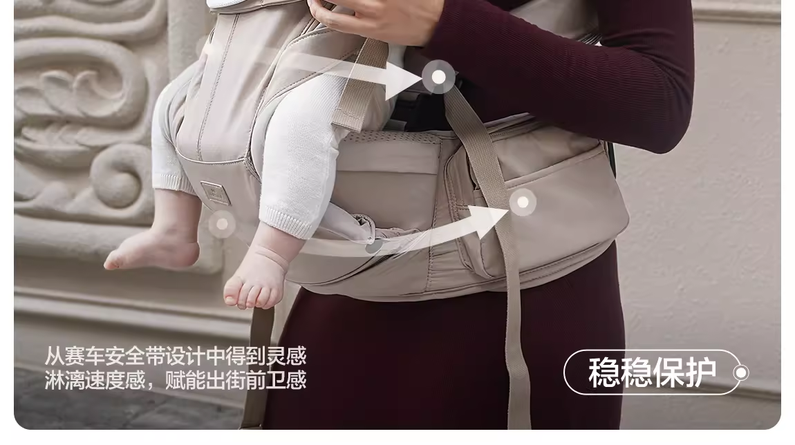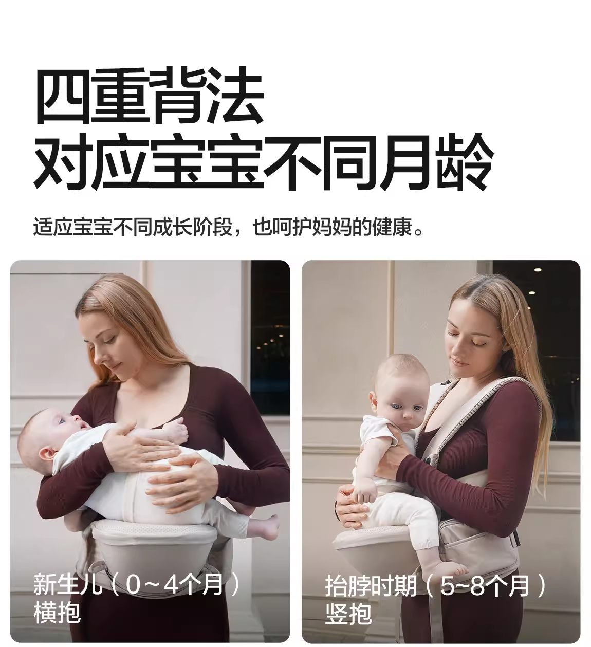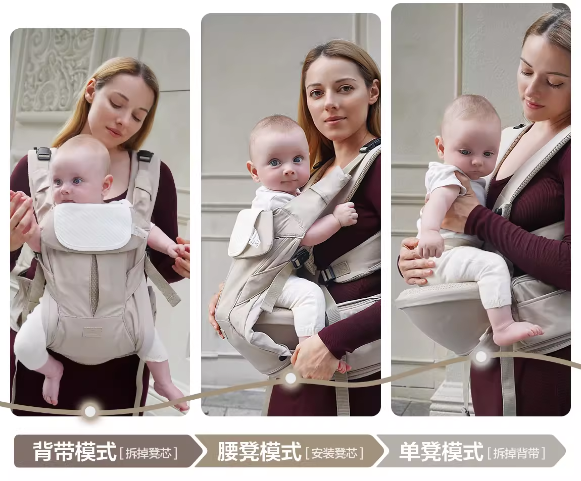 【限量秒杀】贝易时装腰凳婴儿背带二合一宝宝轻便四季出行前后两用抱娃神器【会员下单即赠:口水巾+一次性围兜20张】