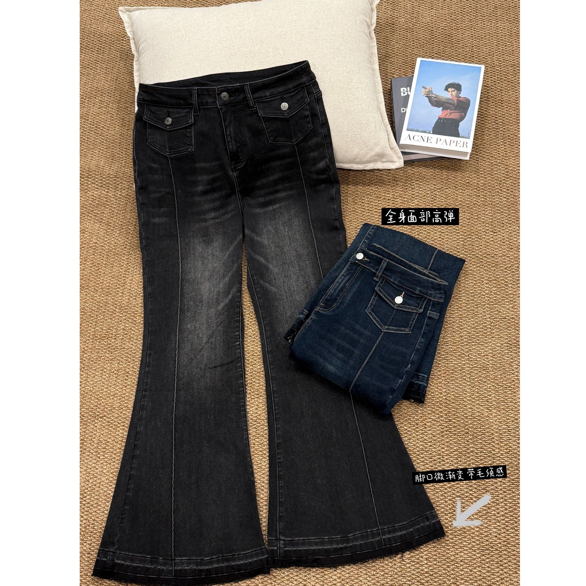 25AW上新 蕾蕾同款【具象化大长腿!】裤脚毛边高腰复古立体裤缝线牛仔微喇裤