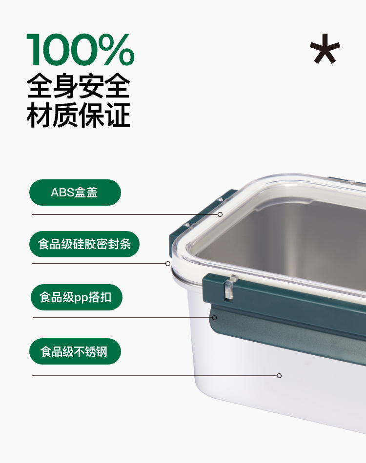 - 产品材质:304食品级不锈钢,ABS盒盖,食品级硅胶密封条