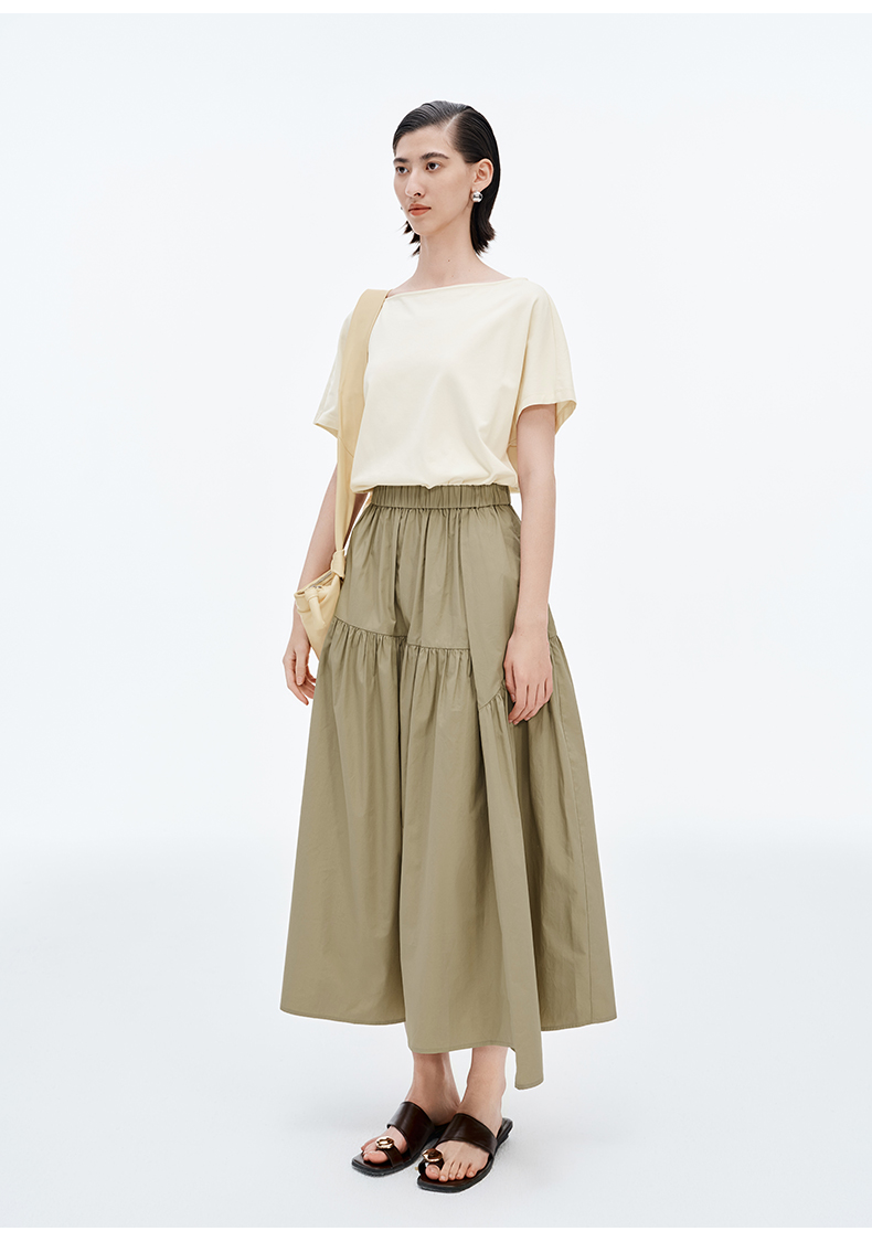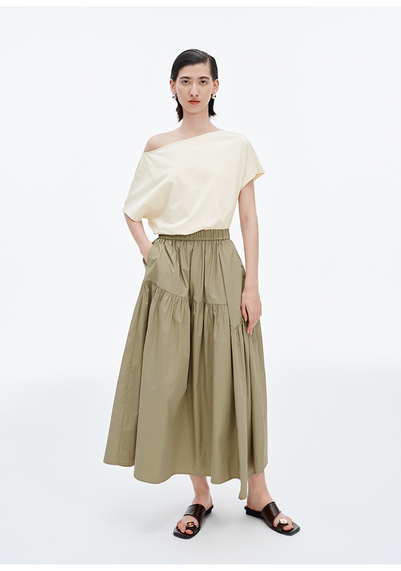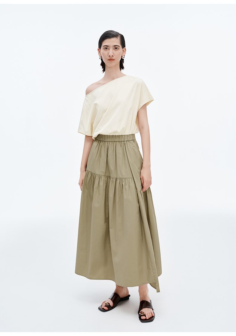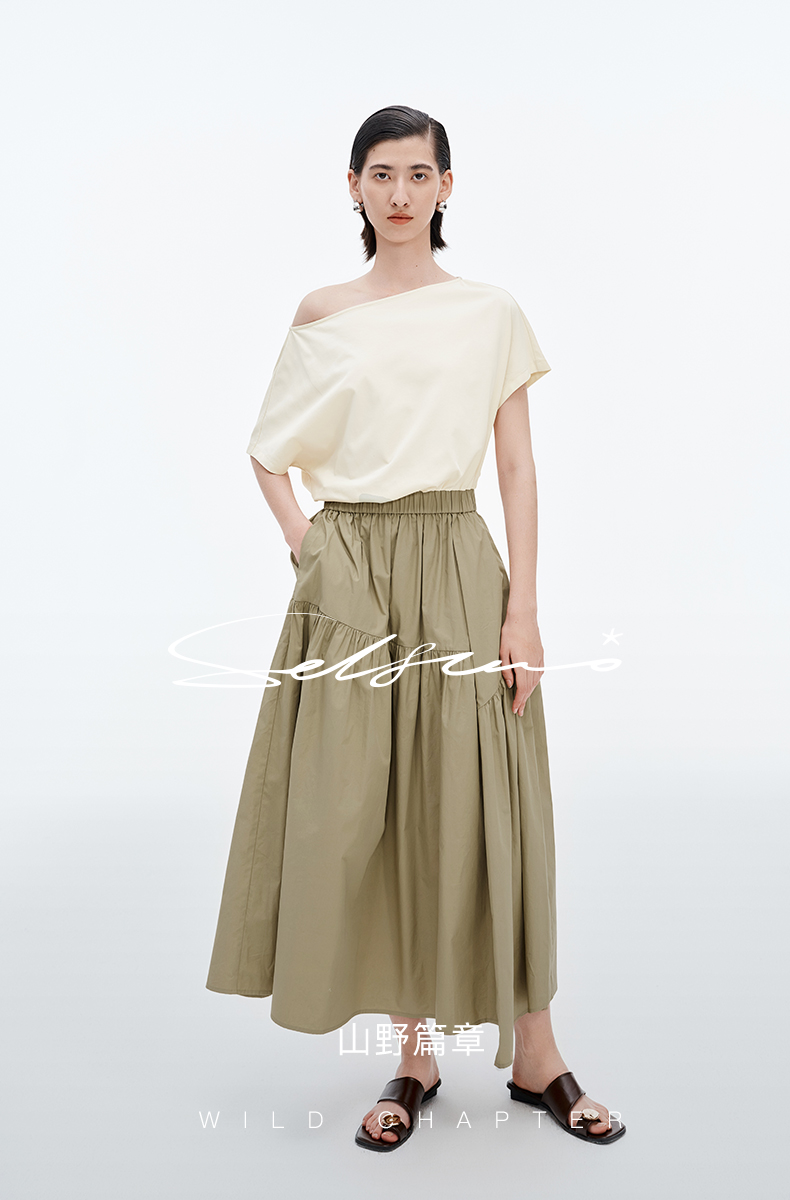 SELFWHO棉混纺防晒不规则拼接连衣裙夏季新款A裙摆凉感长裙