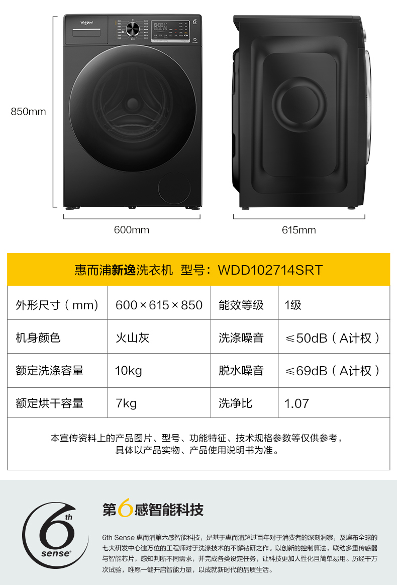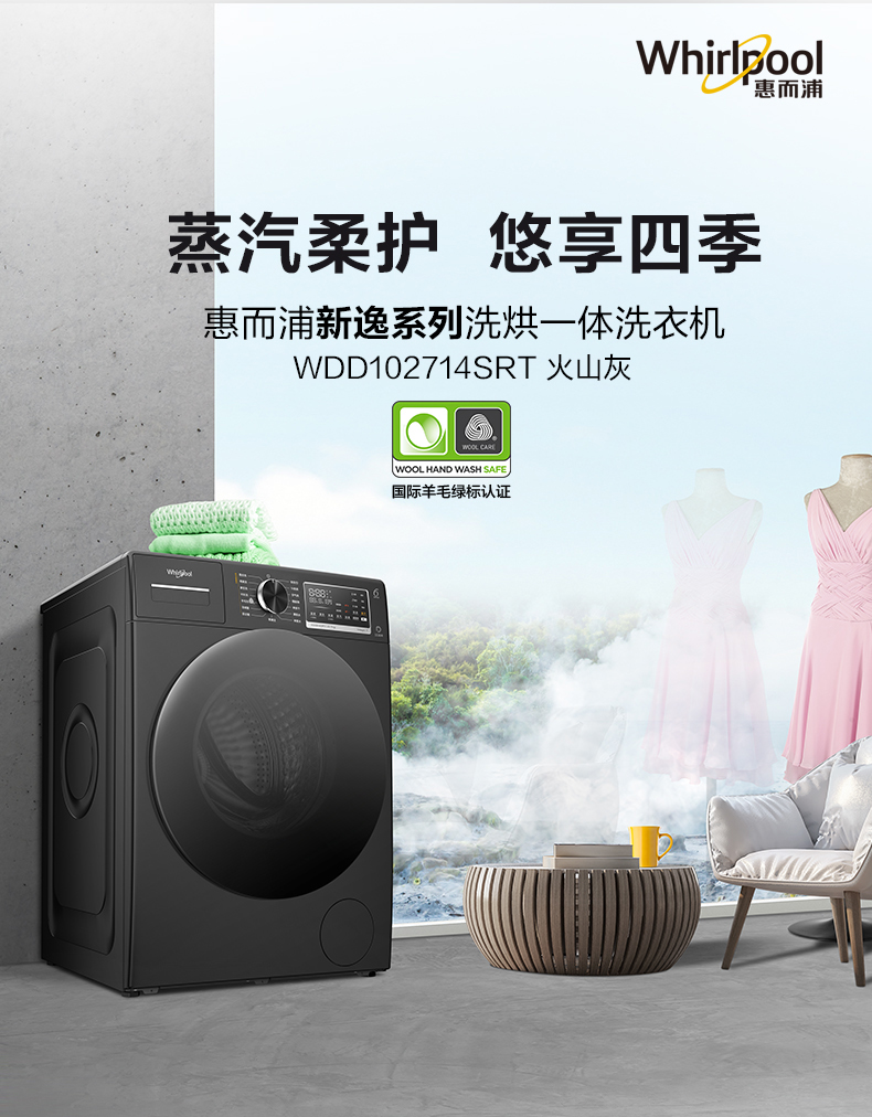 Whirlpool/惠而浦WDD102714SRT全自动滚筒直驱变频10KG家用洗衣机