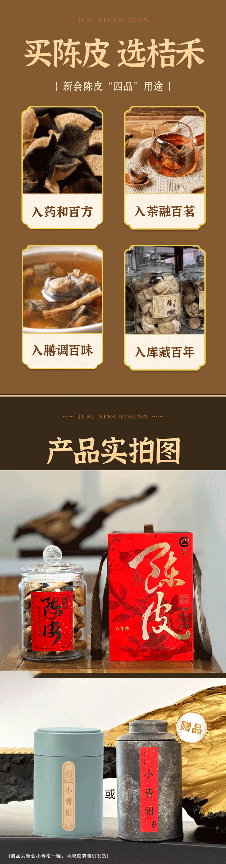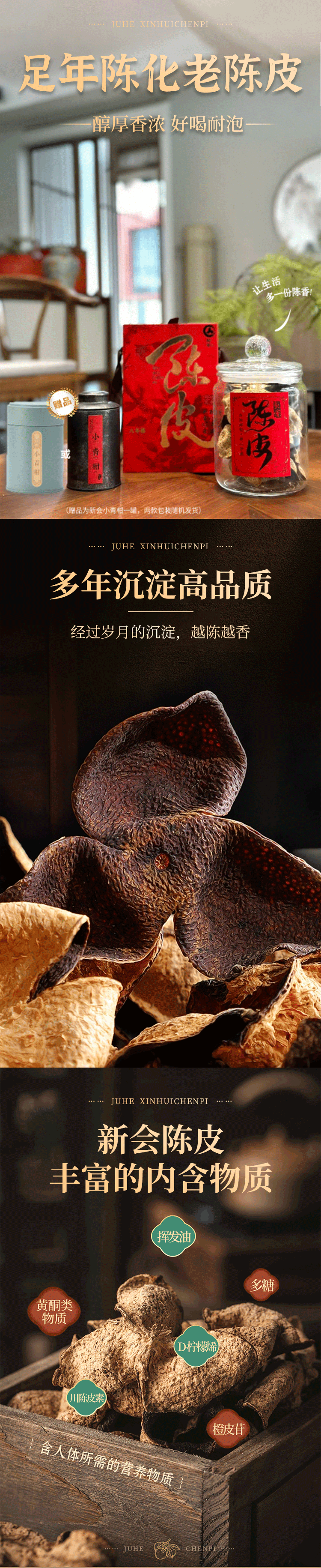 【桔禾新会陈皮(八年陈)】八年自然陈化,醇香浓厚!甘甜滋润,回味悠长,匠心工艺造就陈香四溢!