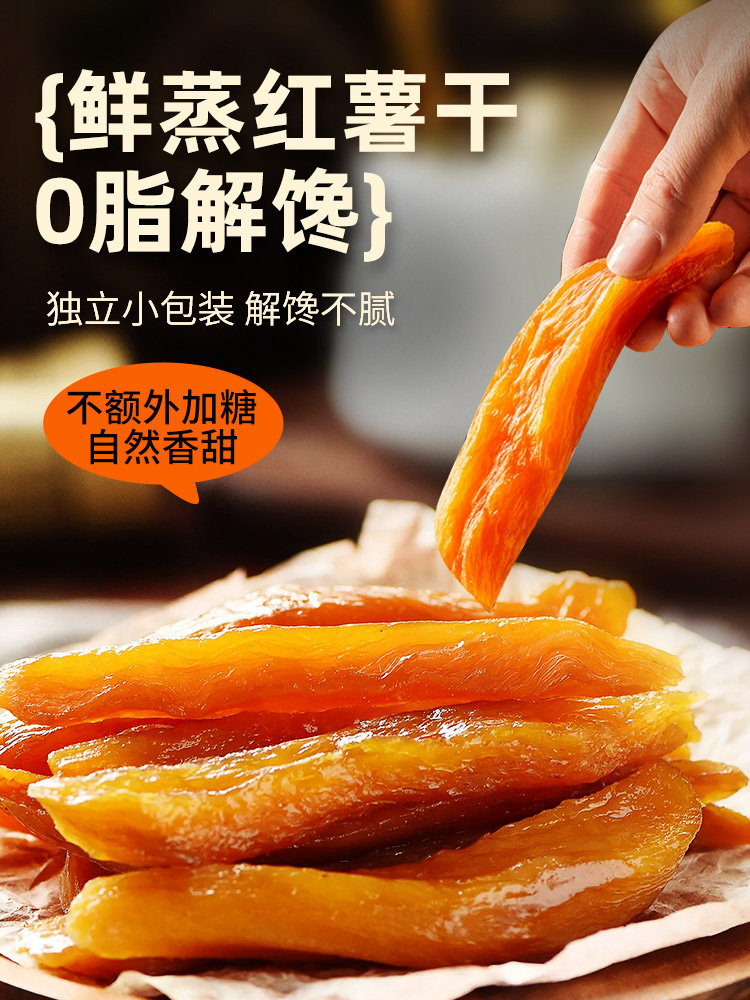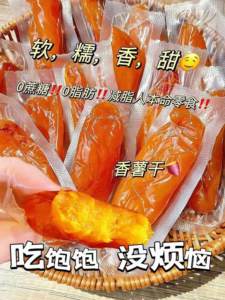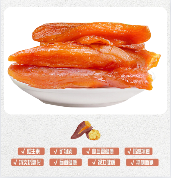 ✨补充能量:红薯本身就是一种富含碳水化合物的食物,而红薯干经过浓缩后,能快速为人体提供能量,适合在疲劳、饥饿时食用,帮助恢复体力。