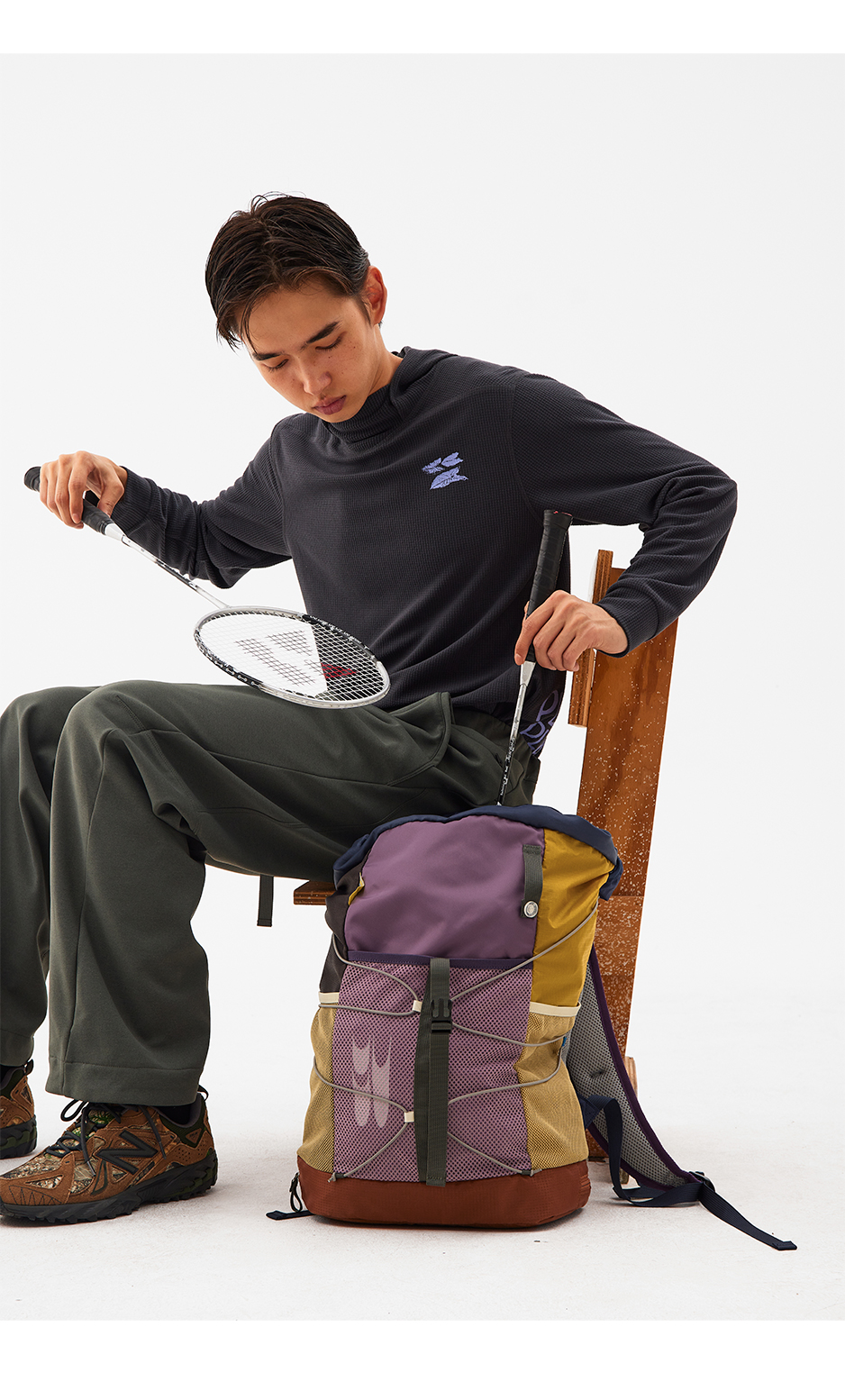 CryingCenter羽毛球网球秋冬美拉德多色拼接运动双肩背包哭喊中心
