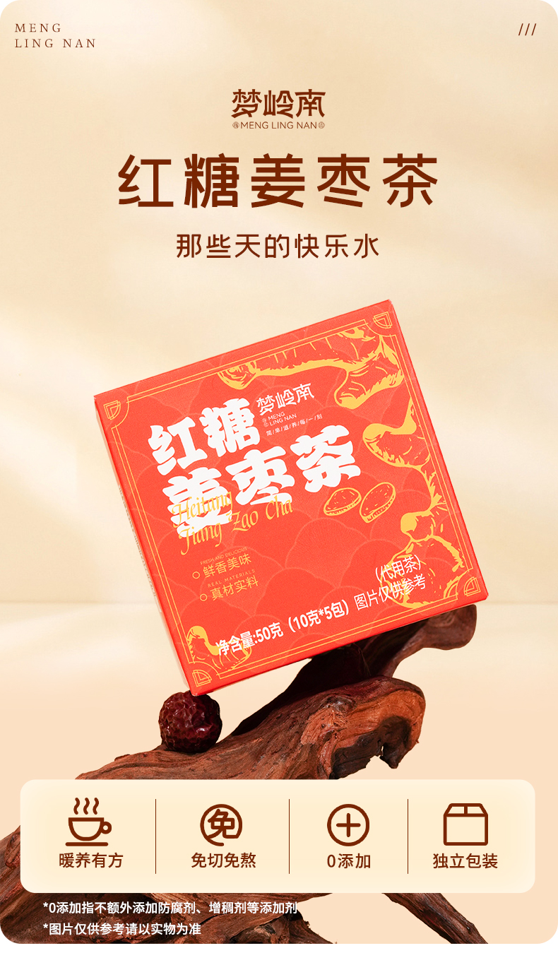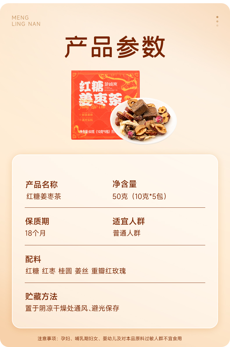 【姜茶暖身 手脚不冰凉】梦岭南红糖姜枣茶 5种好料 红糖姜丝红枣桂圆玫瑰 无添加剂 纯净配方食养