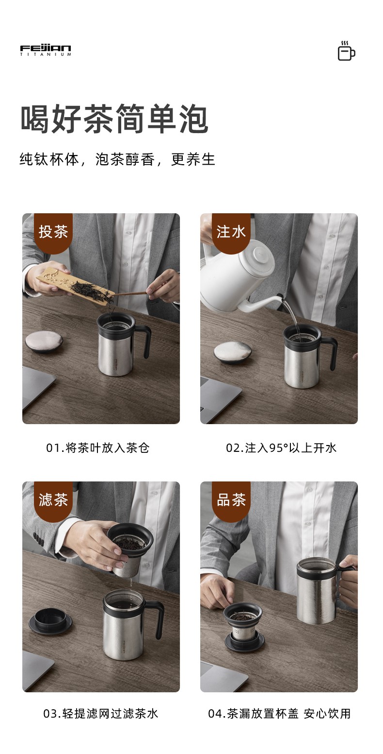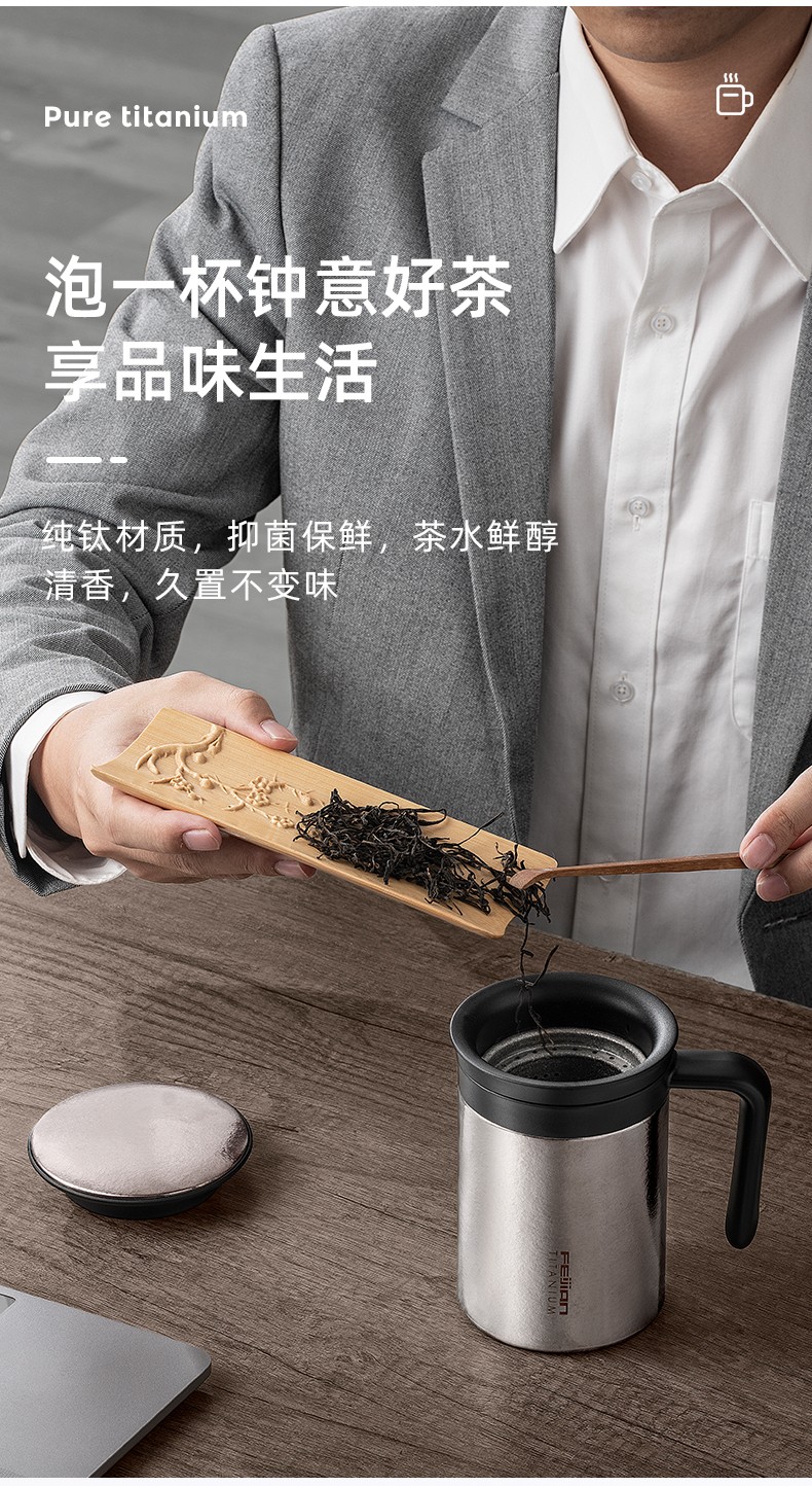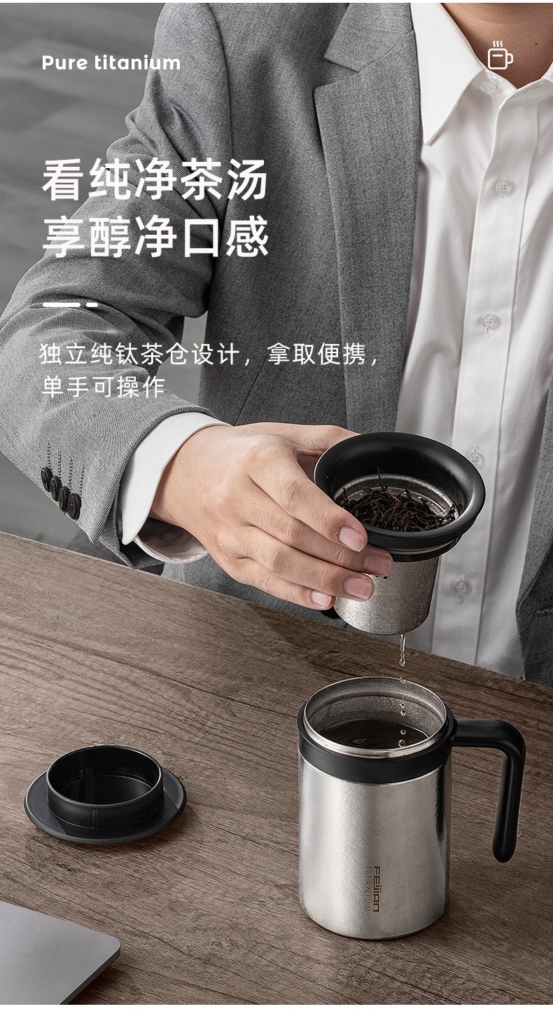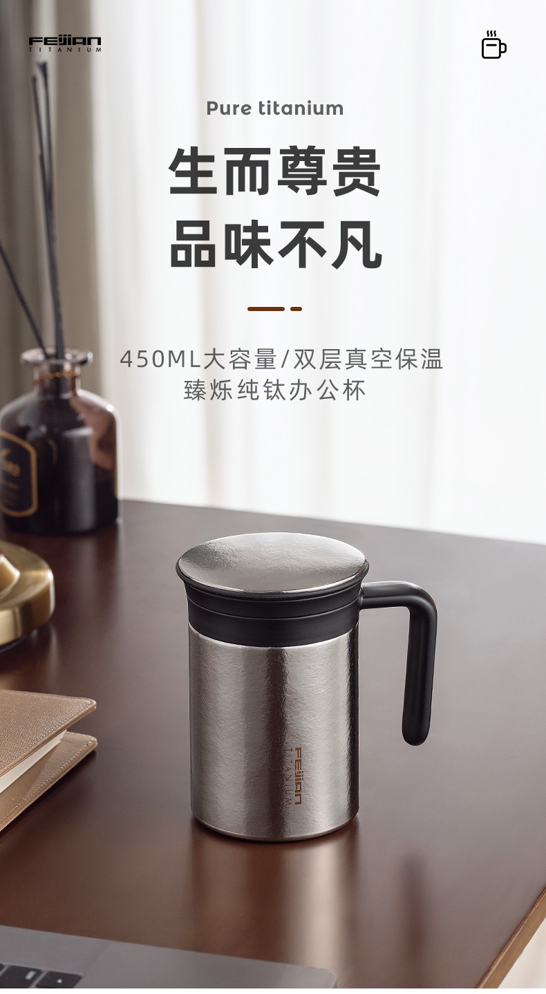 飞剑(FEIJIAN) 臻烁系列真空办公钛杯 FT-ZCT45A (450ml) 银色