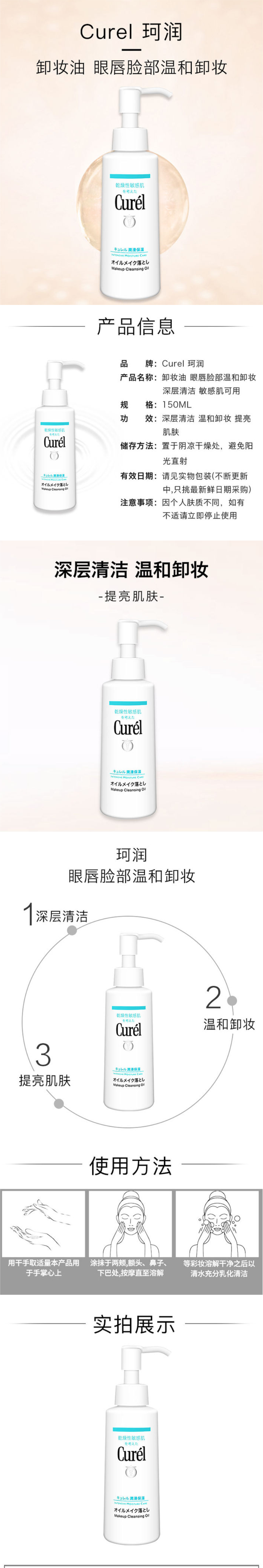 Curel珂润温和深层清洁保湿脸部卸妆油敏感肌150ml