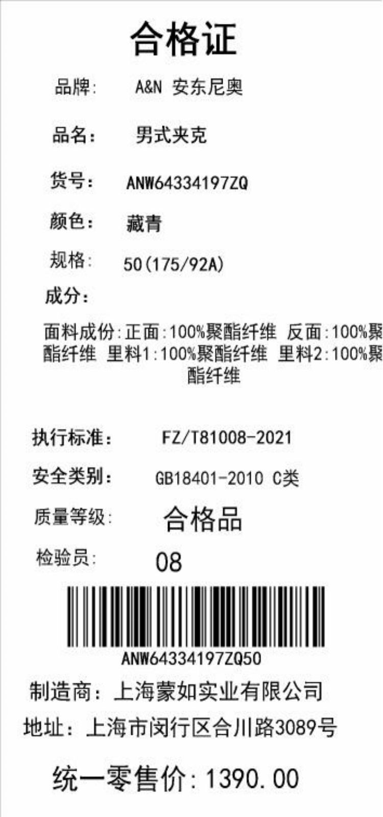 安东尼奥A&N 【三防】翻领夹克外套男士春秋商务休闲挺括防风茄克男夹克5109404
